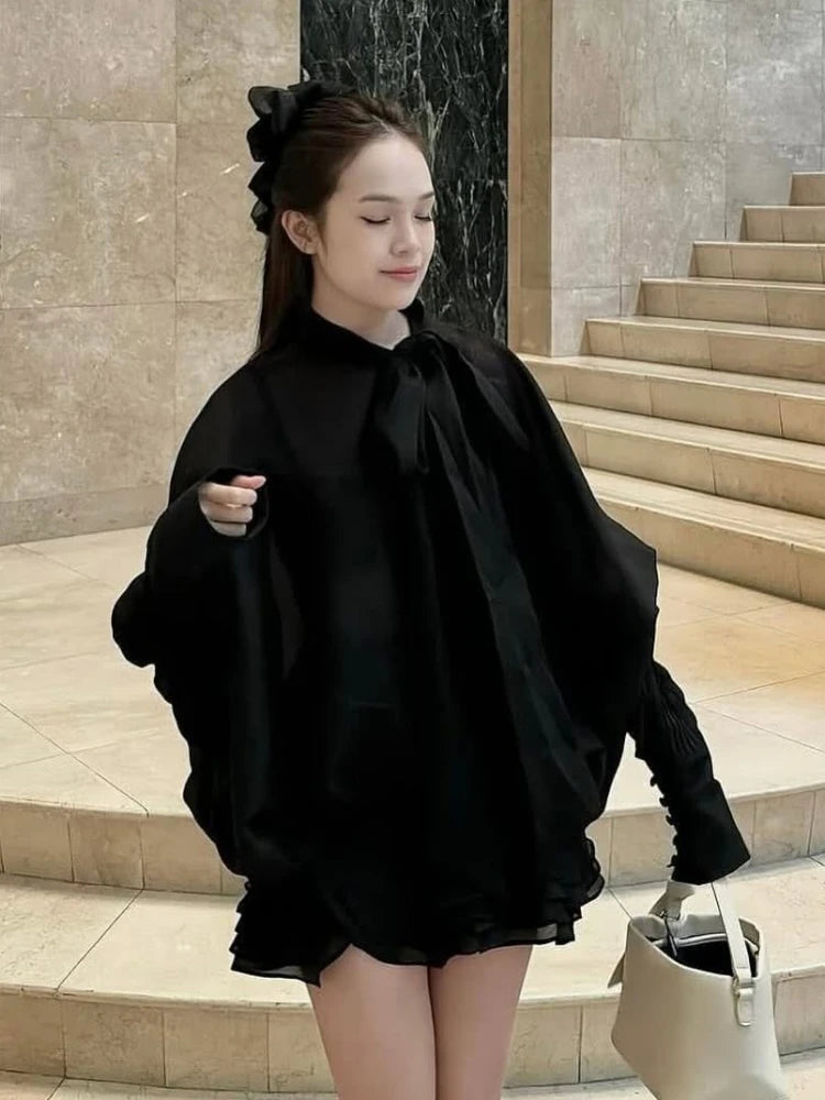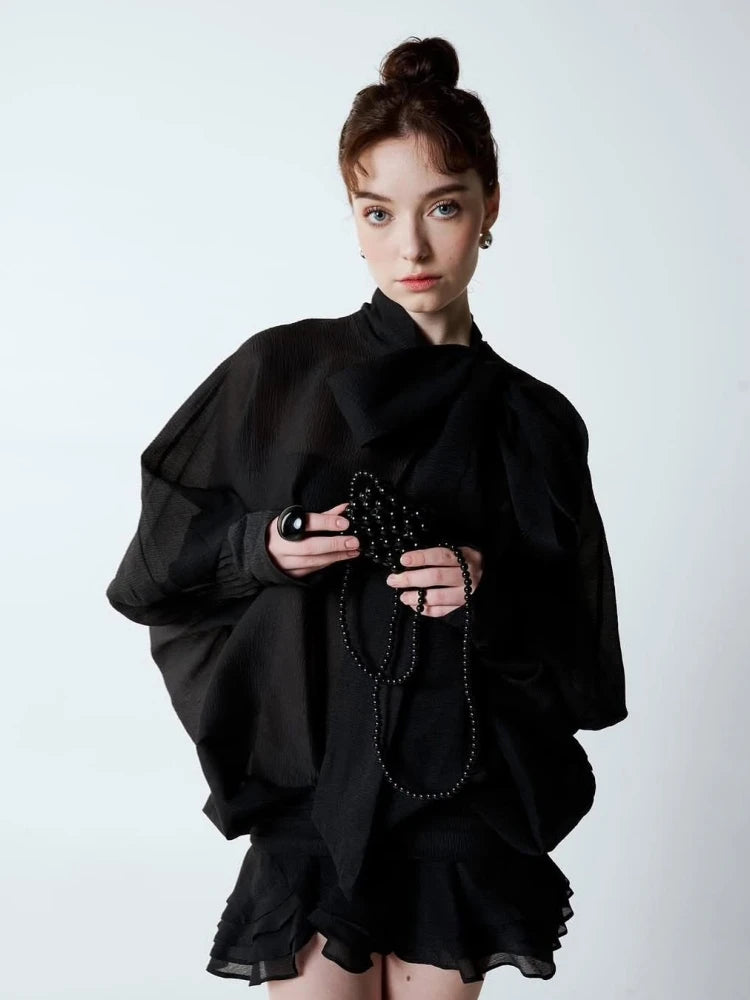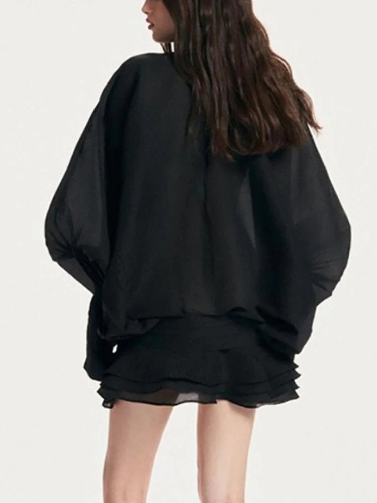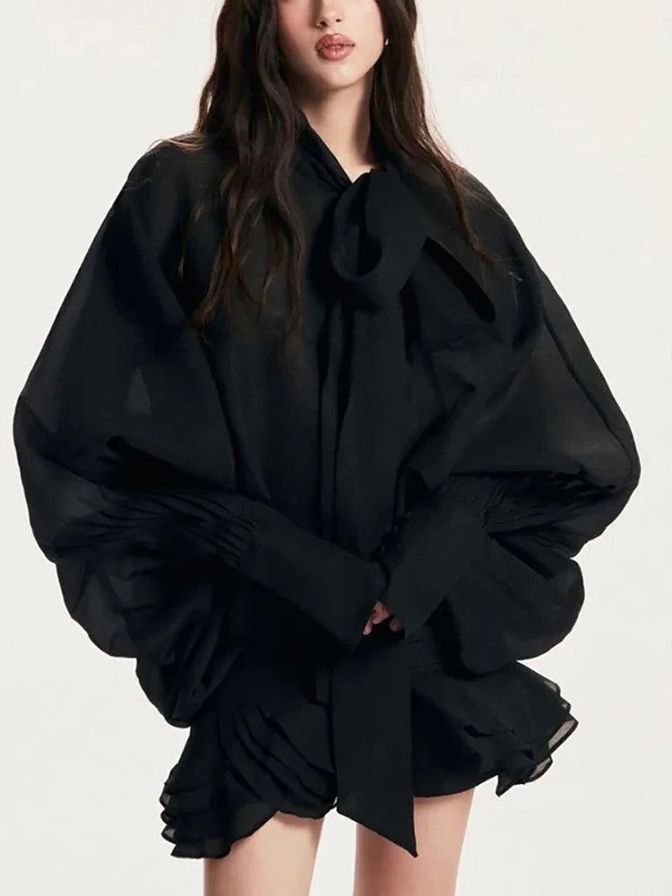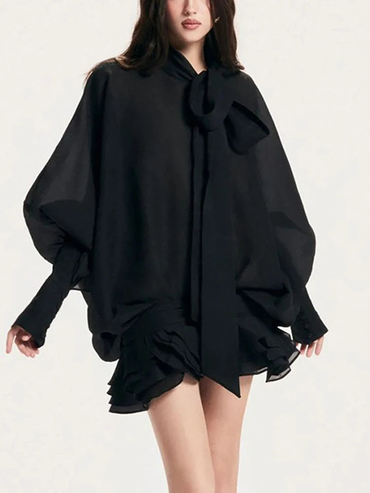 Trend4us Bold Bow‑Tie Batwing Ruffle Mini Dress