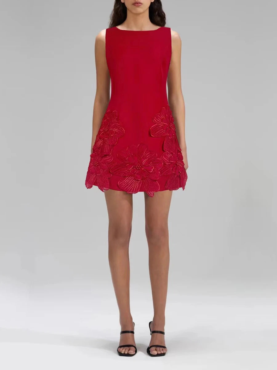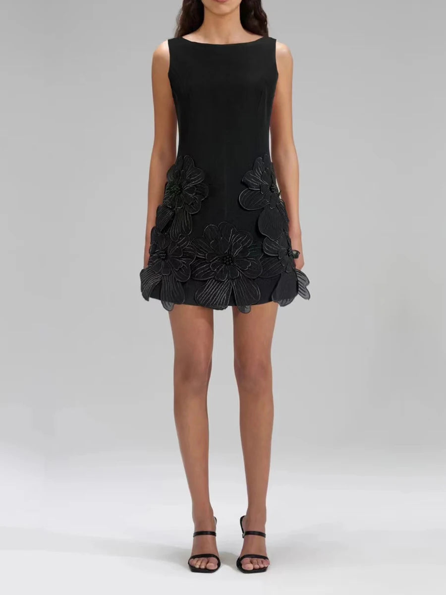 Trend4us 3D Floral Appliqué A-Line Mini Dress