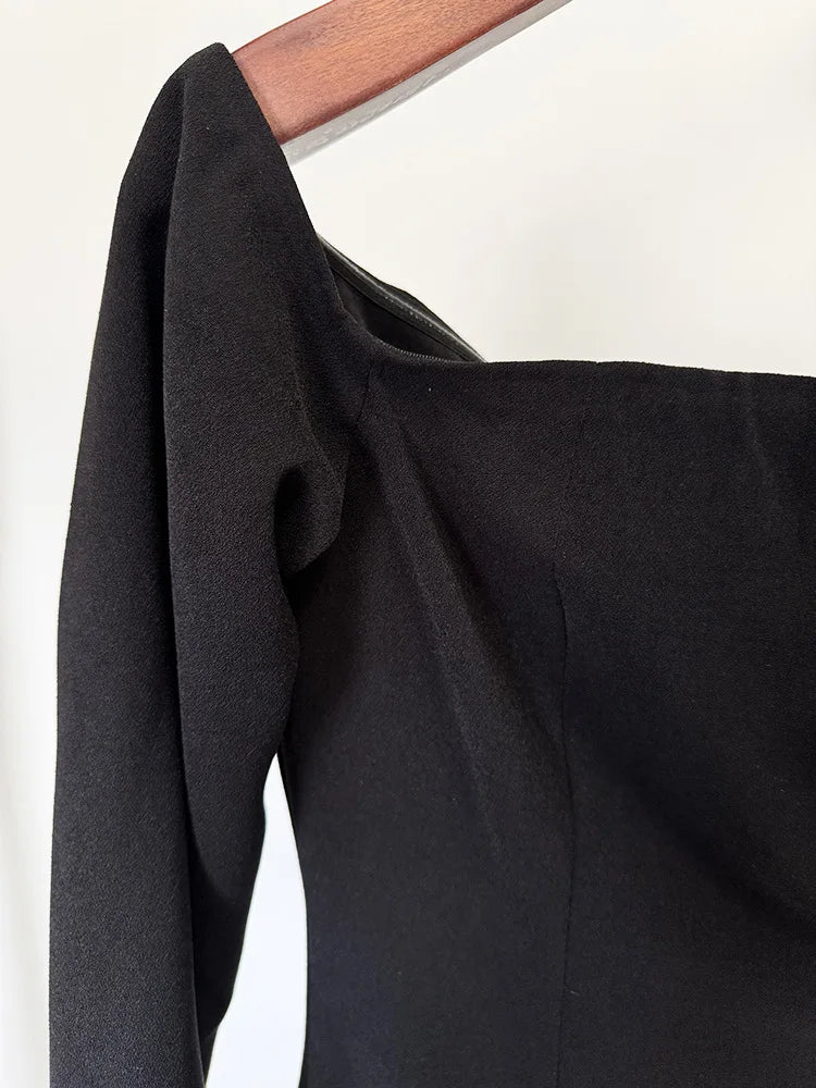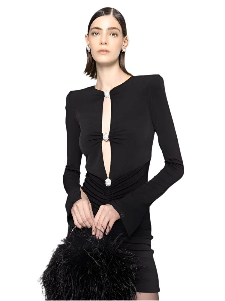 Trend4us Black Long Sleeve Rhinestone Short Dress