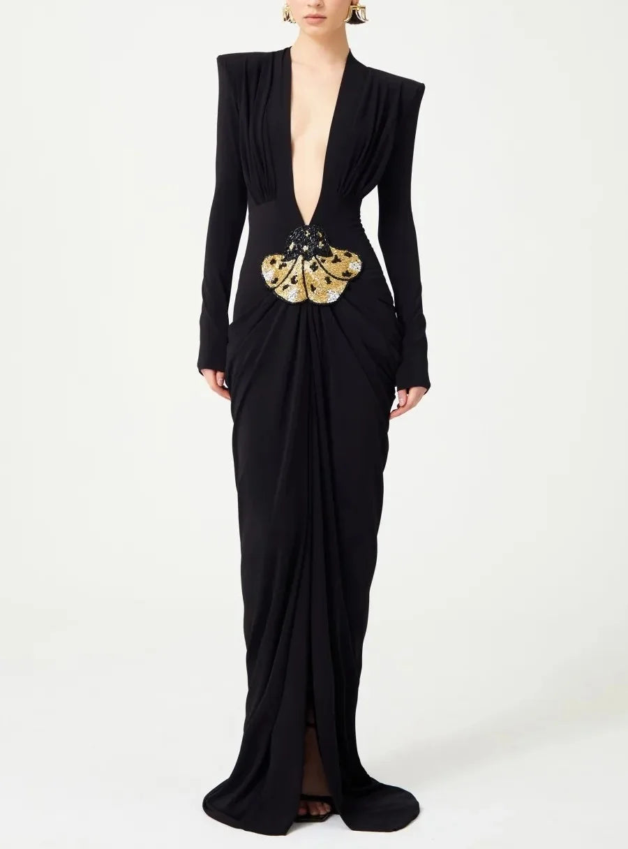 Trend4us Luxe Bloom 3D Floral Appliqué Maxi Dress