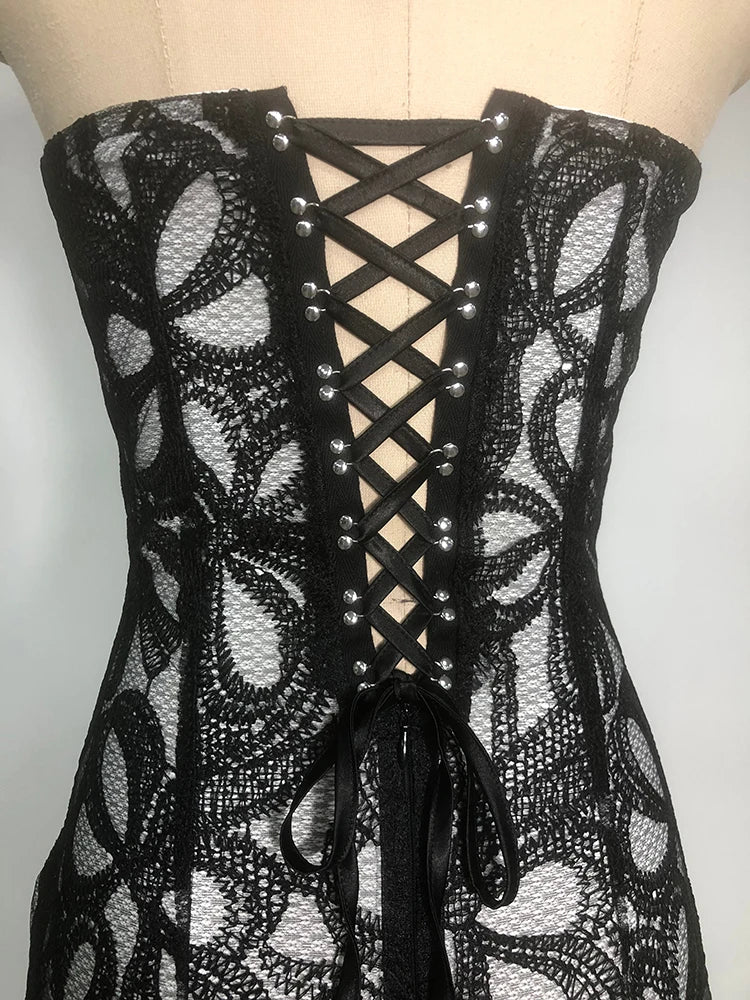 Trend4us Women's Gothic Velvet Lace Panel Maxi Dress