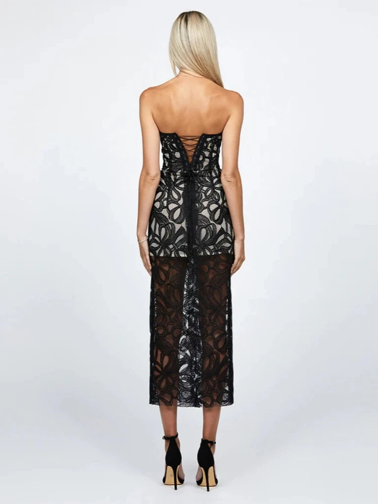 Trend4us Sleek Strapless Zip-Front Leather Midi Dress