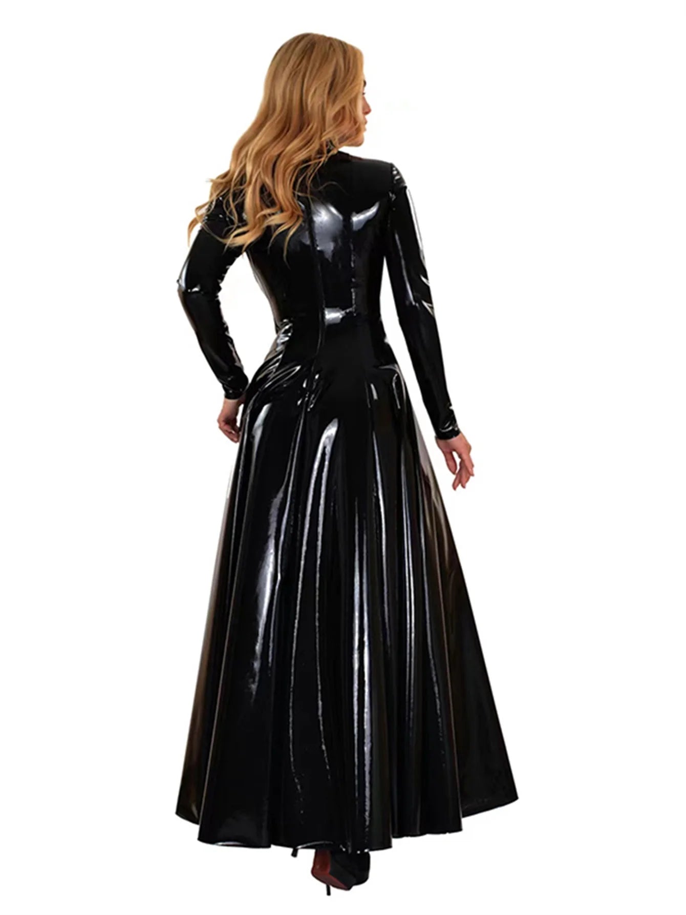 Trend4us Women's Glossy Patent Leather Maxi Dress