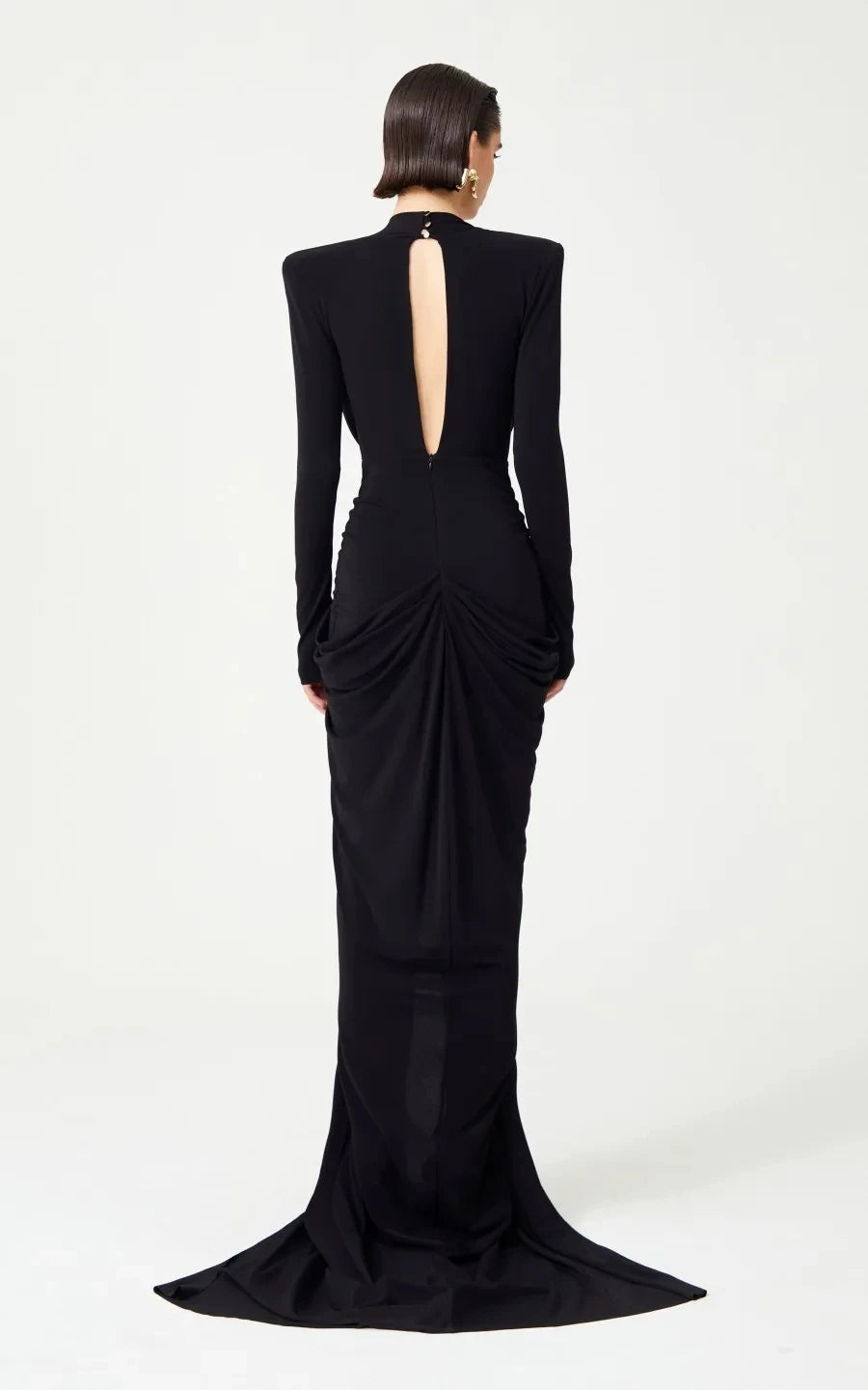 Trend4us Women's Elegant Black Cutout Evening Maxi Dress