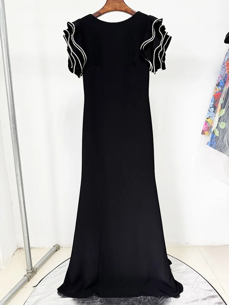Trend4us Luxe Ruffled Crystal Backless Gown