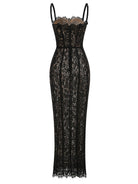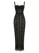 Command attention with the Trend4us Luxe Black Lace Corset Evening Gown — a striking fusion of elegance and allure. This ankle-length masterpiece features a sculpted corset bodice with a square neckline, designed to enhance your silhouette with precision and poise. Crafted from delicate black lace layered over a structured base, it offers a romantic yet refined aesthetic perfect for evening galas, formal events, or high-fashion nights out. The slim fit and ankle-grazing hem create a sleek hourglass shape, making this gown your go-to for unforgettable entrances.