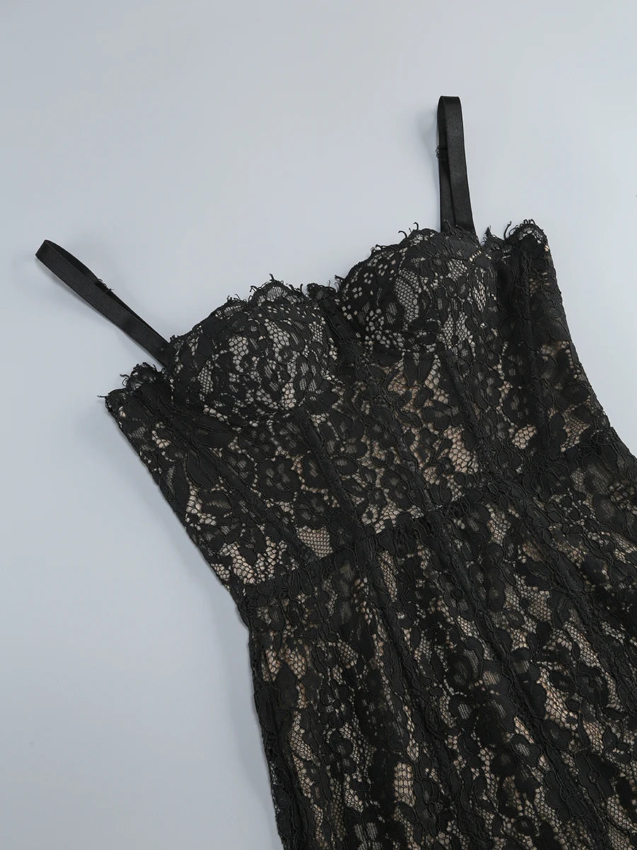 Trend4us Luxe Black Lace Corset Evening Gown