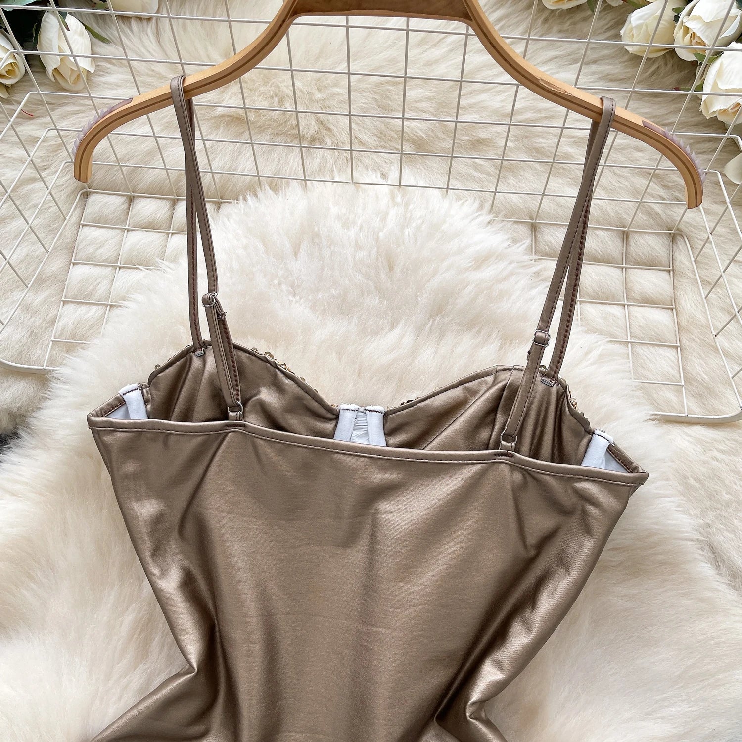 Trend4us Sequin Bustier Satin Bodysuit