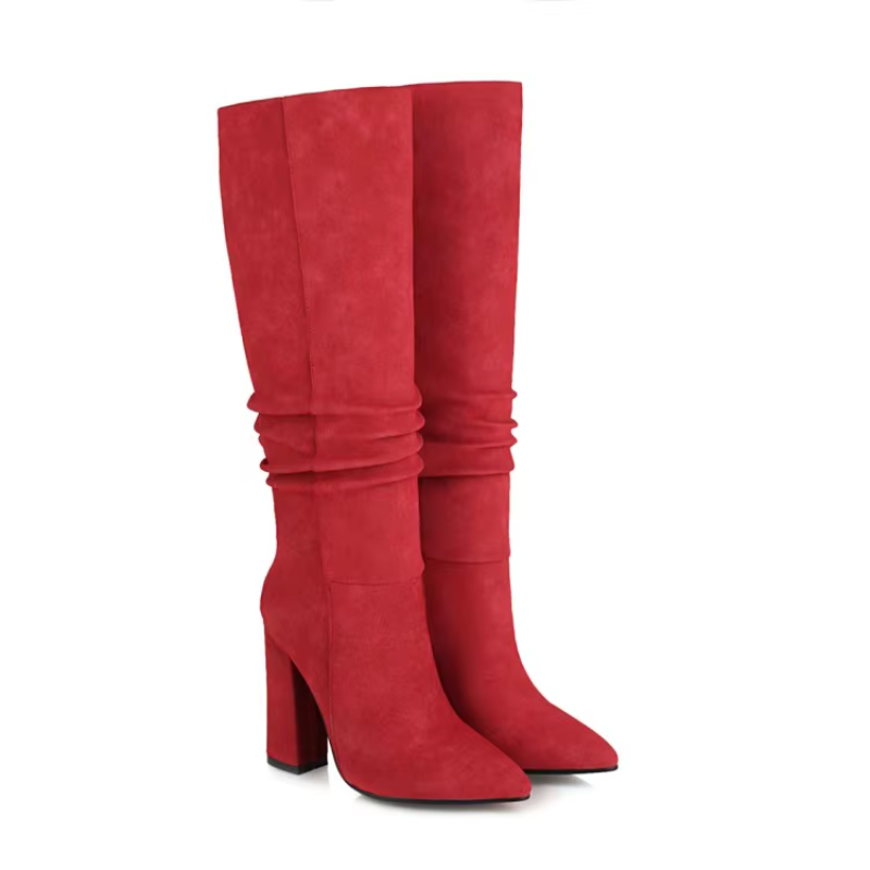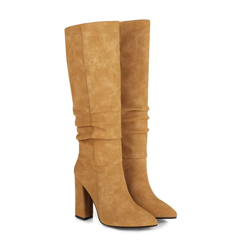 Trend4us Women’s Block Heel Knee-High Suede Boots
