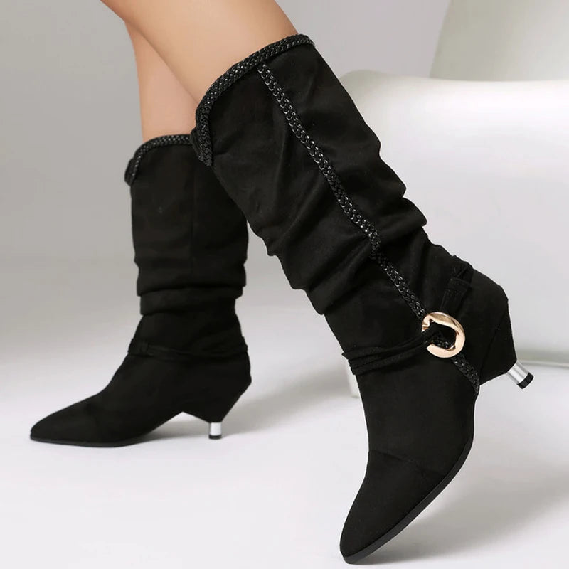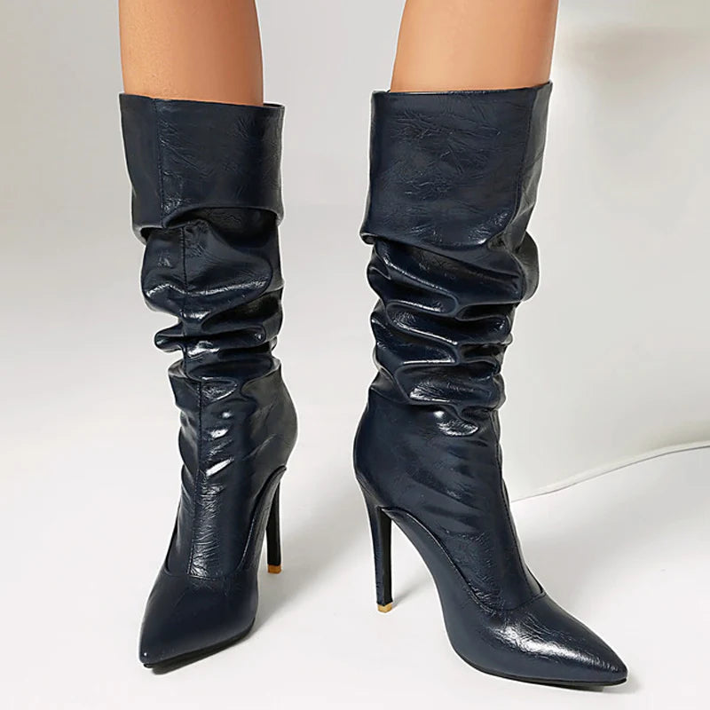 Trend4us Luxe Slouchy Pointed Toe Wedge Midi Boots