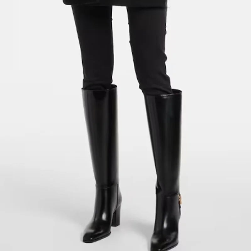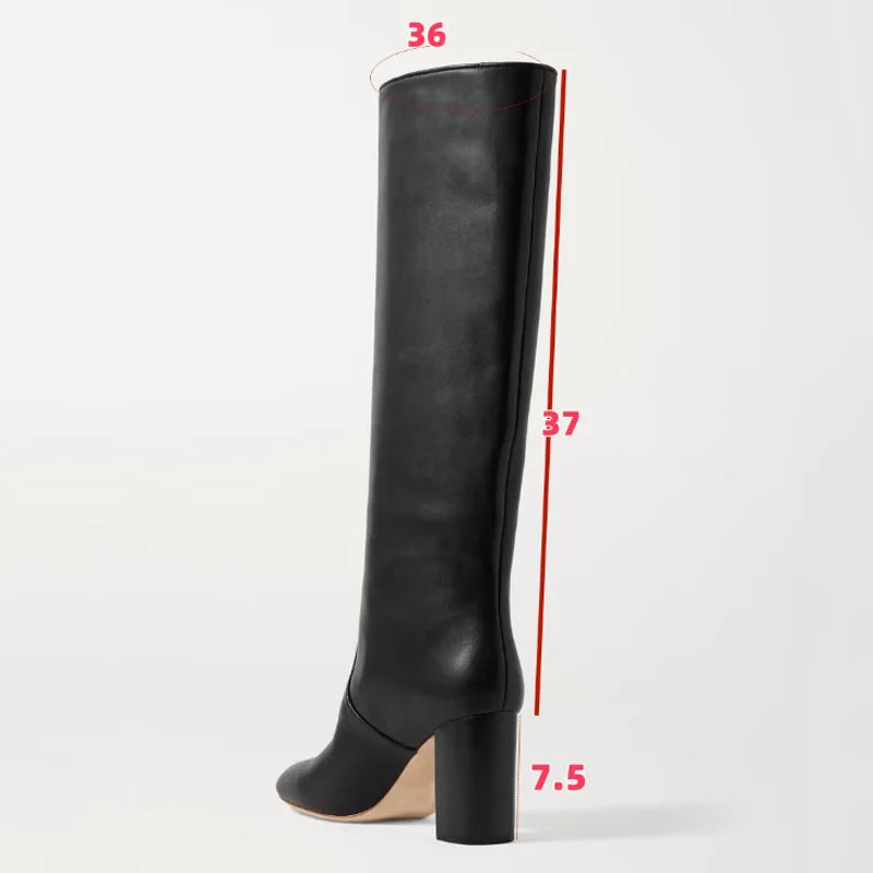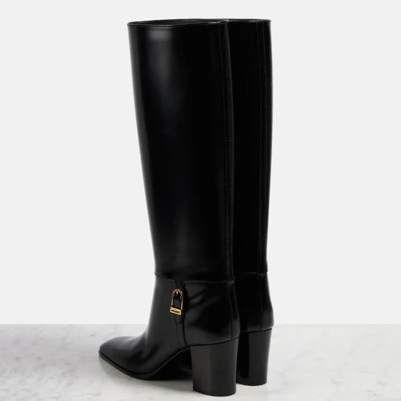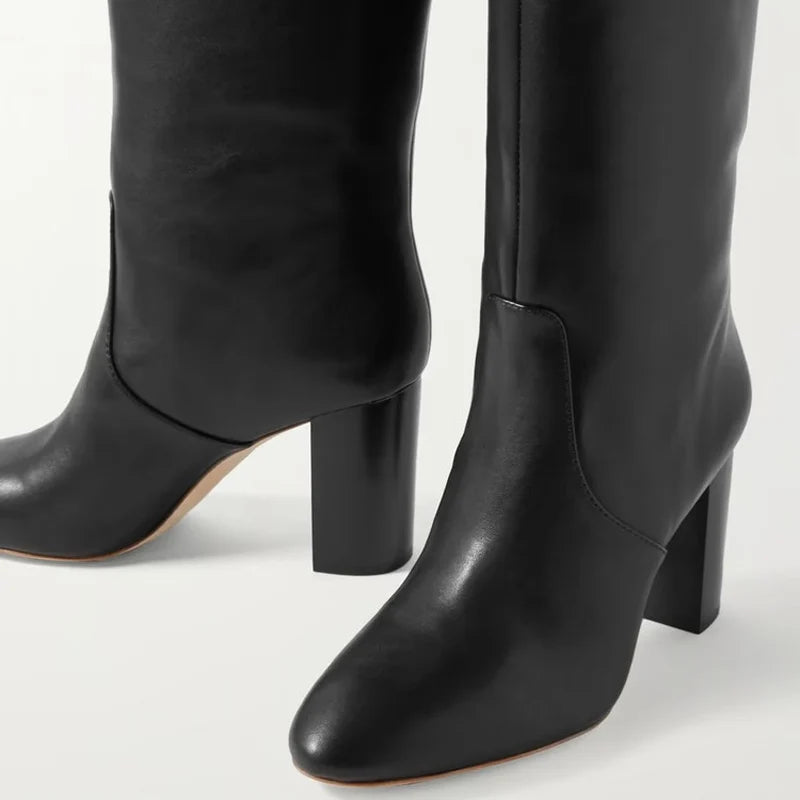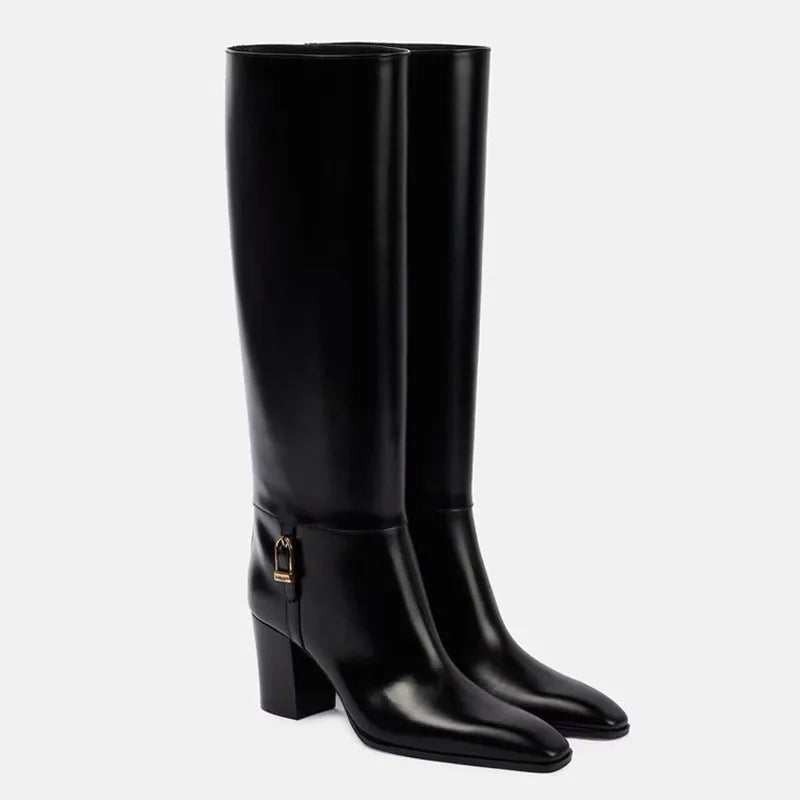Trend4us Classic Leather Block Heel Knee-High Boots