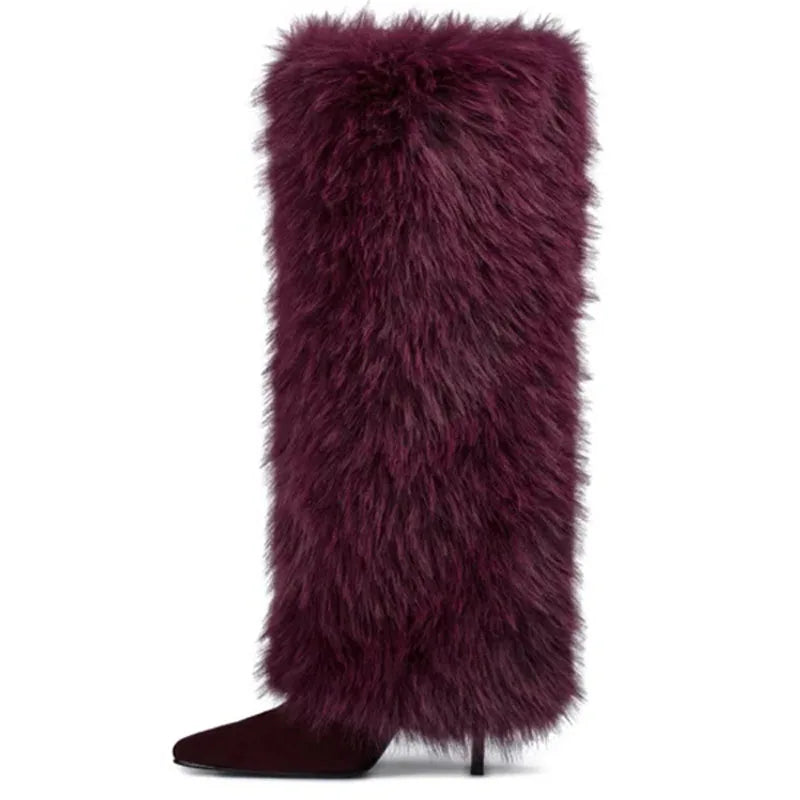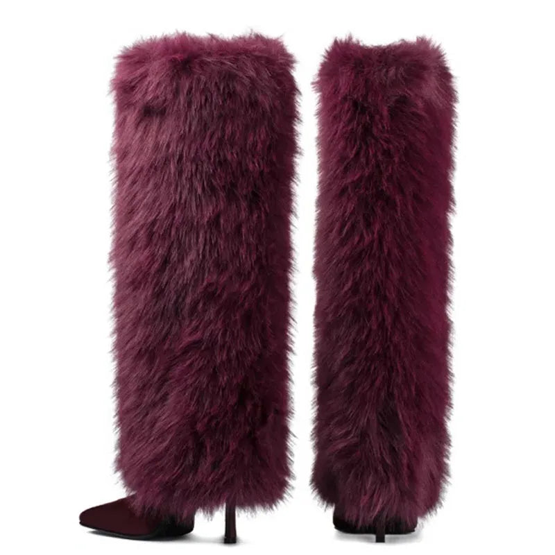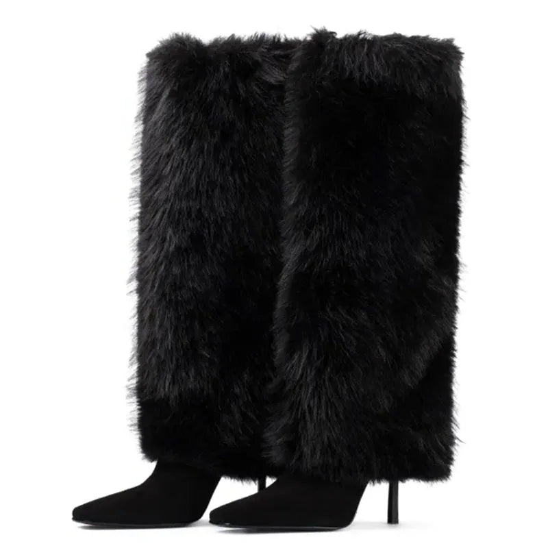 Trend4us Luxe Faux Fur Fluffy Stiletto Boots