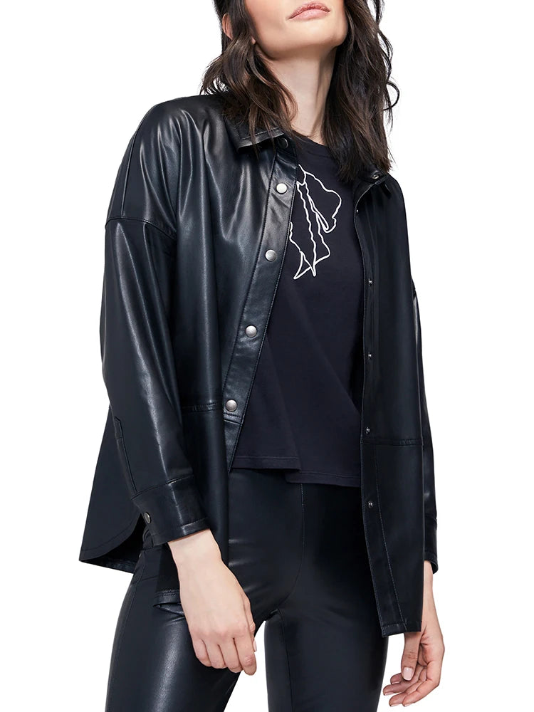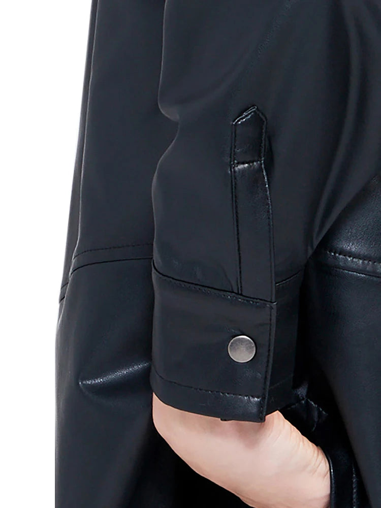Trend4us Women's Oversized Faux Leather Snap Button Jacket