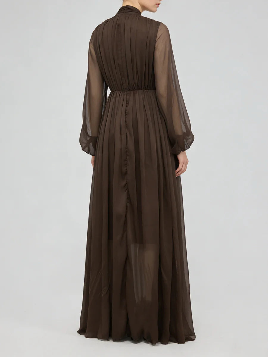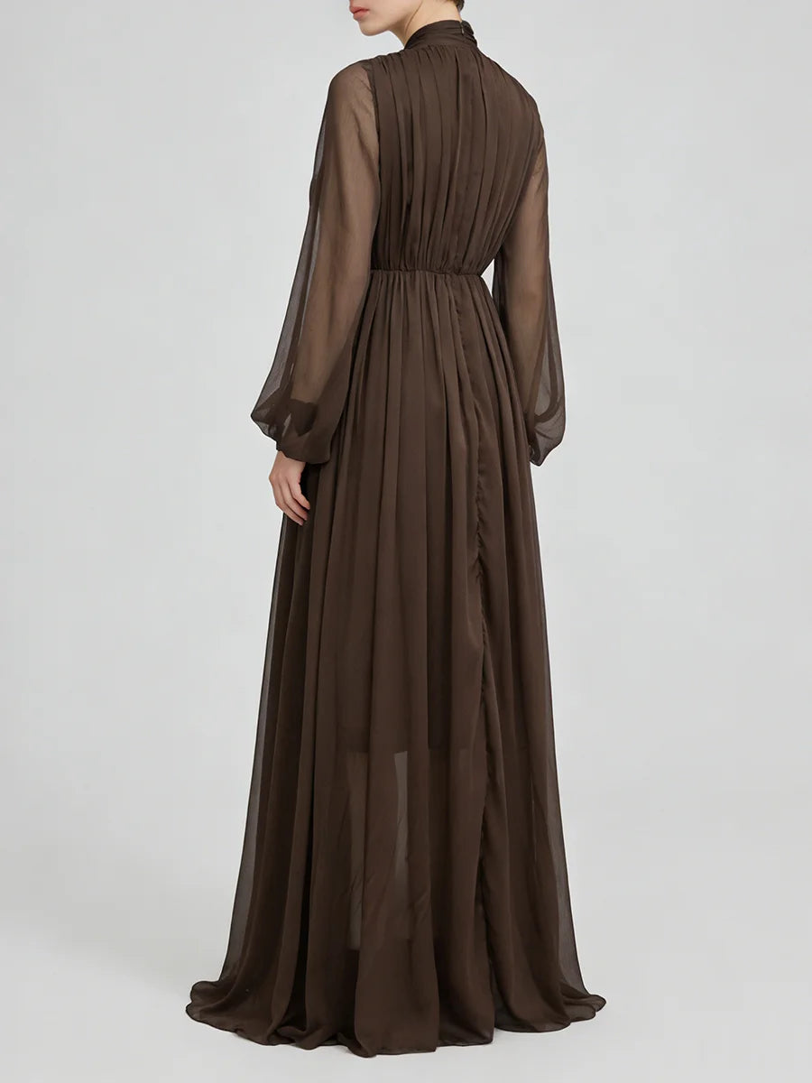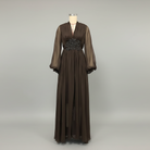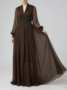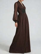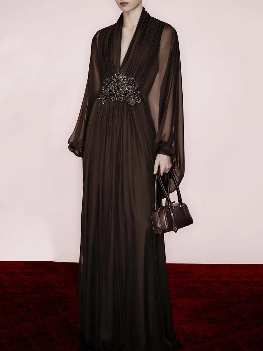 Trend4us Classic Beaded Waist Sheer Sleeve Chiffon Maxi Dress