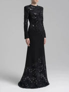 Command attention in this breathtaking mermaid maxi dress that combines timeless elegance with modern glamour. Delicate lace patchwork and shimmering sequin accents create a luxurious look that's perfect for your most memorable occasions.