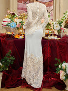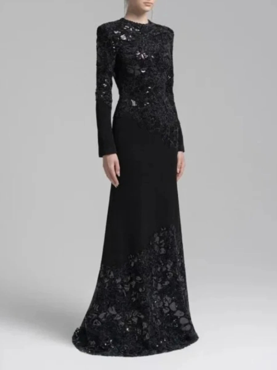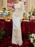 Trend4us Elegant Lace Patchwork Long Sleeve Mermaid Maxi Dress