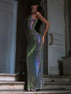 Turn heads and steal the spotlight in this breathtaking iridescent sequin maxi dress that shimmers with every movement. The ultimate statement piece for making unforgettable entrances at your most glamorous occasions.