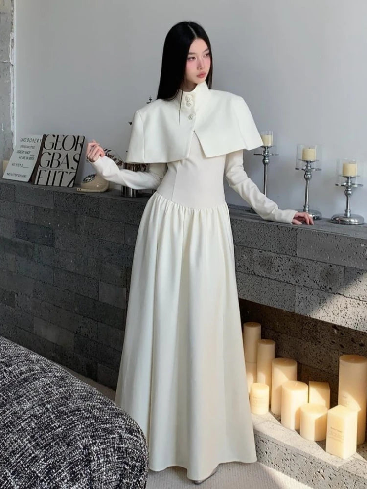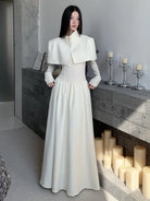 Make a grand entrance in this show-stopping square-neck cape shawl maxi dress. Combining dramatic cape detailing with elegant simplicity, this statement piece is designed for the woman who appreciates both sophistication and theatrical flair.