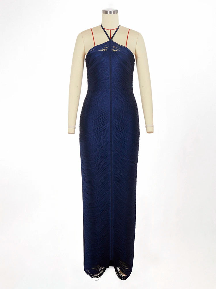 Trend4us Luxe Textured Halter Bodycon Maxi Dress