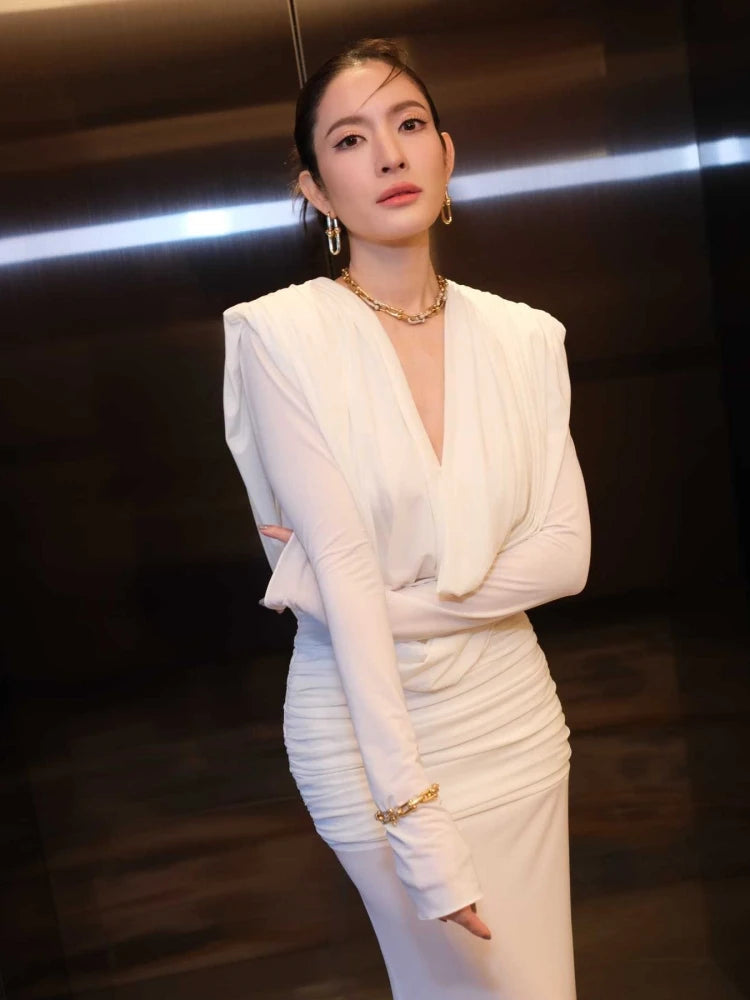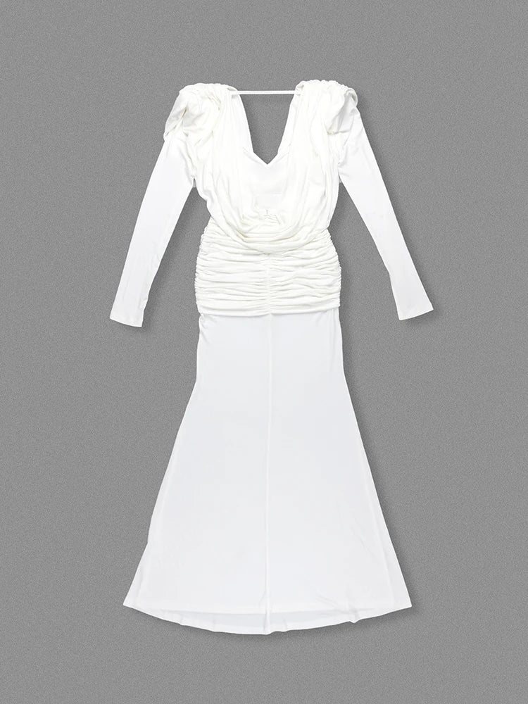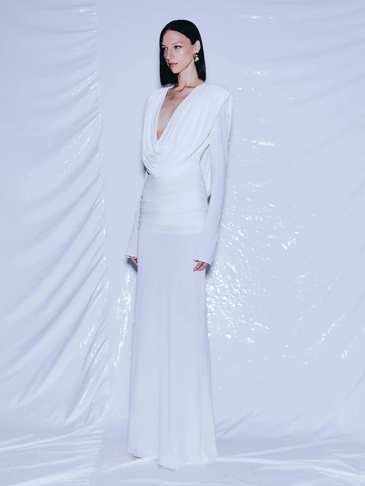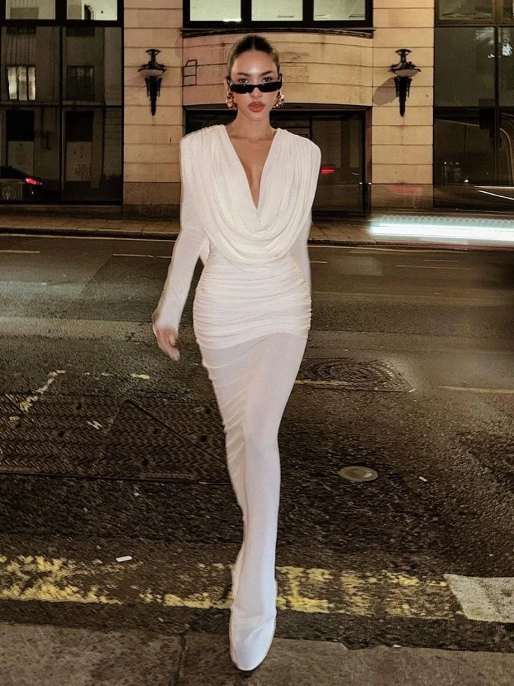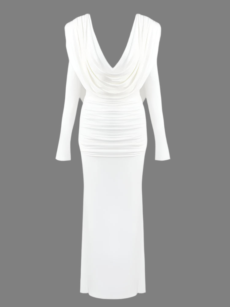 Trend4us Unique Cowl Neck Ruched Maxi Dress