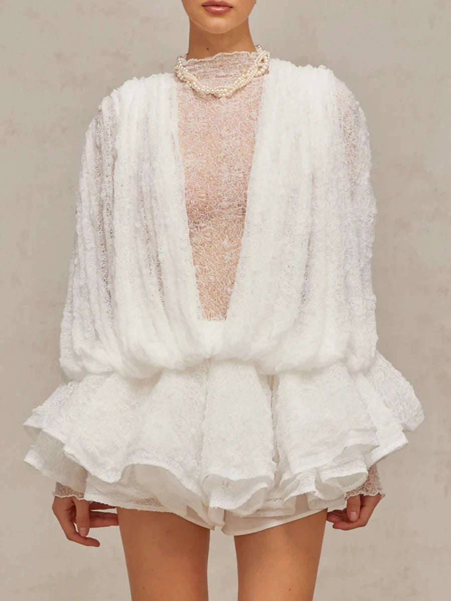 Trend4us Luxe Sheer Drape Lace Short Dress