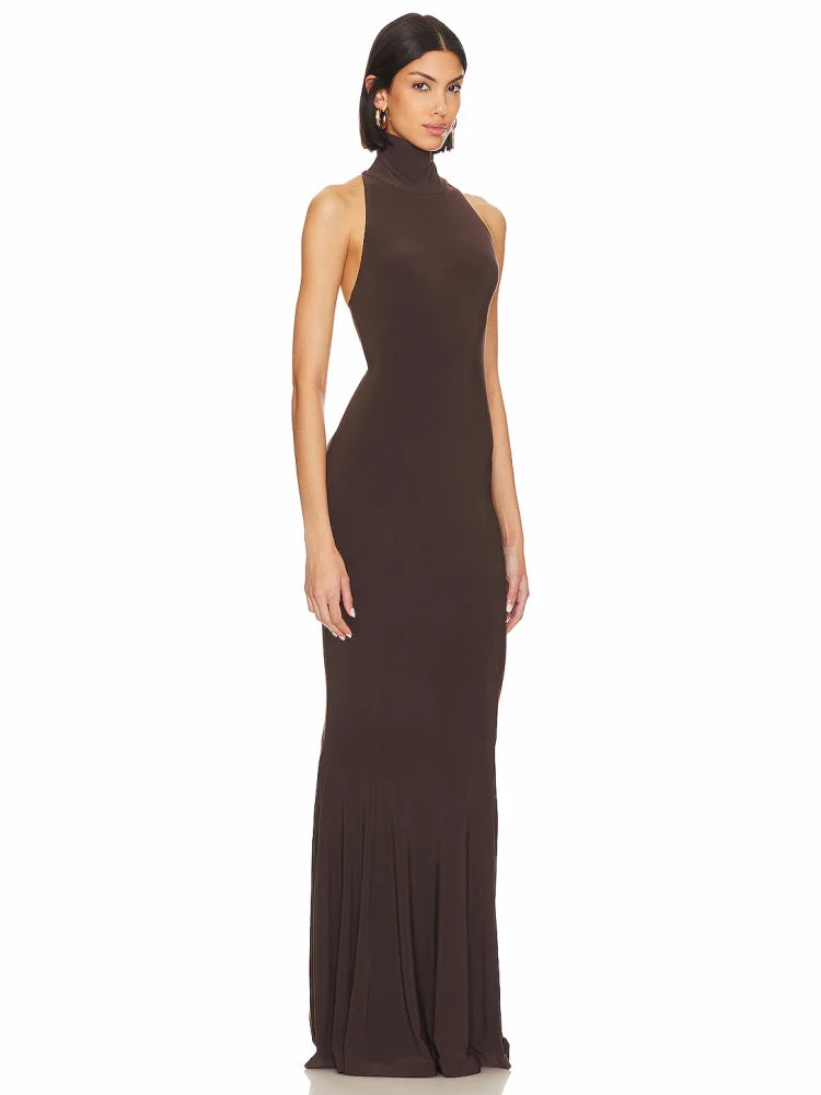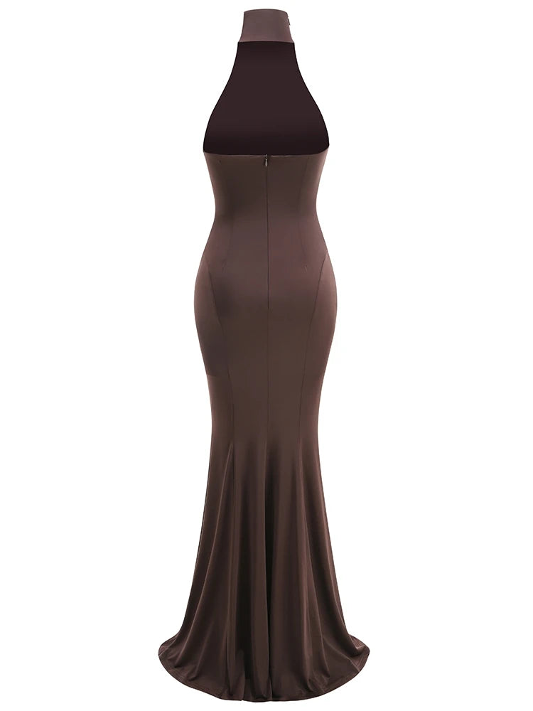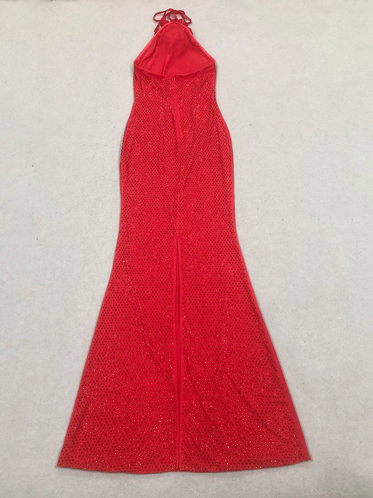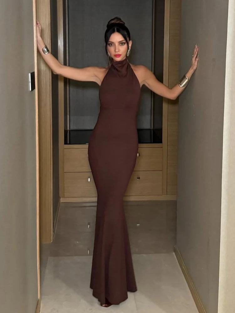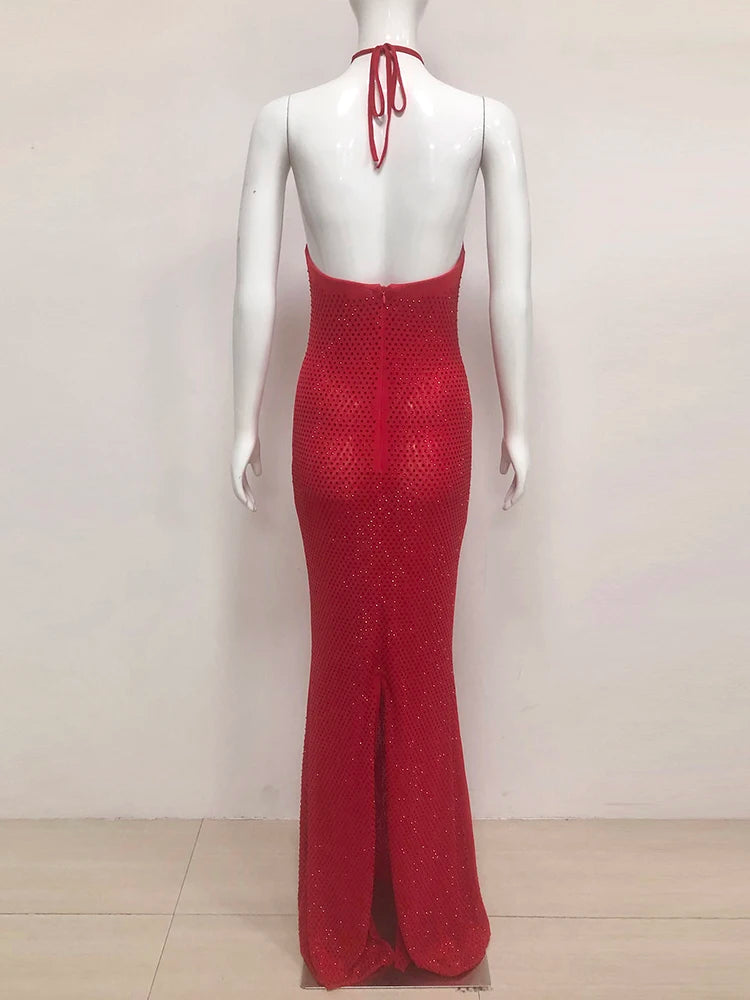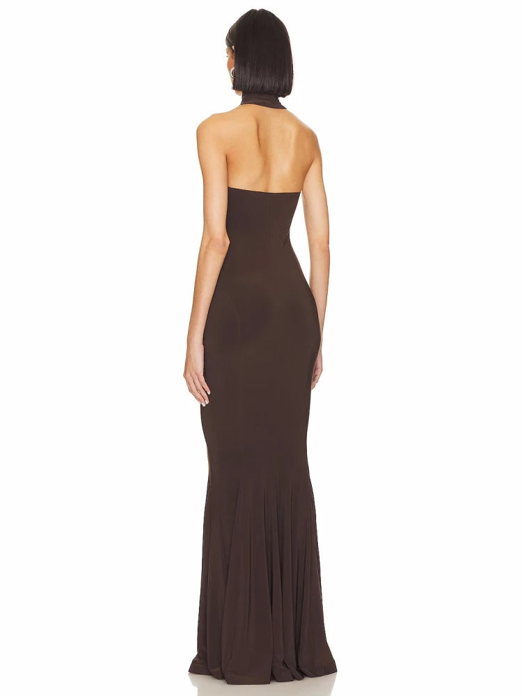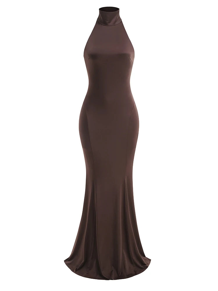 Trend4us Luxe Halter Neck Backless Maxi Gown