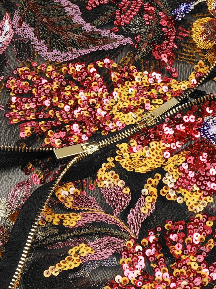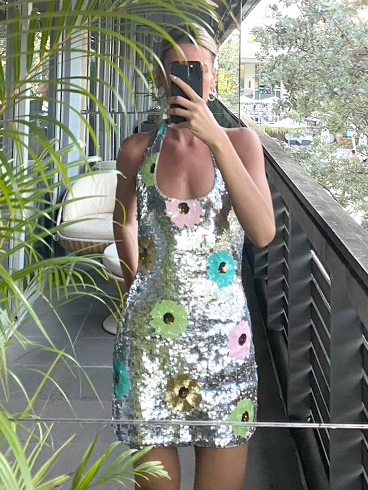 Trend4us Dazzling Backless Floral Sequin Mini Dress