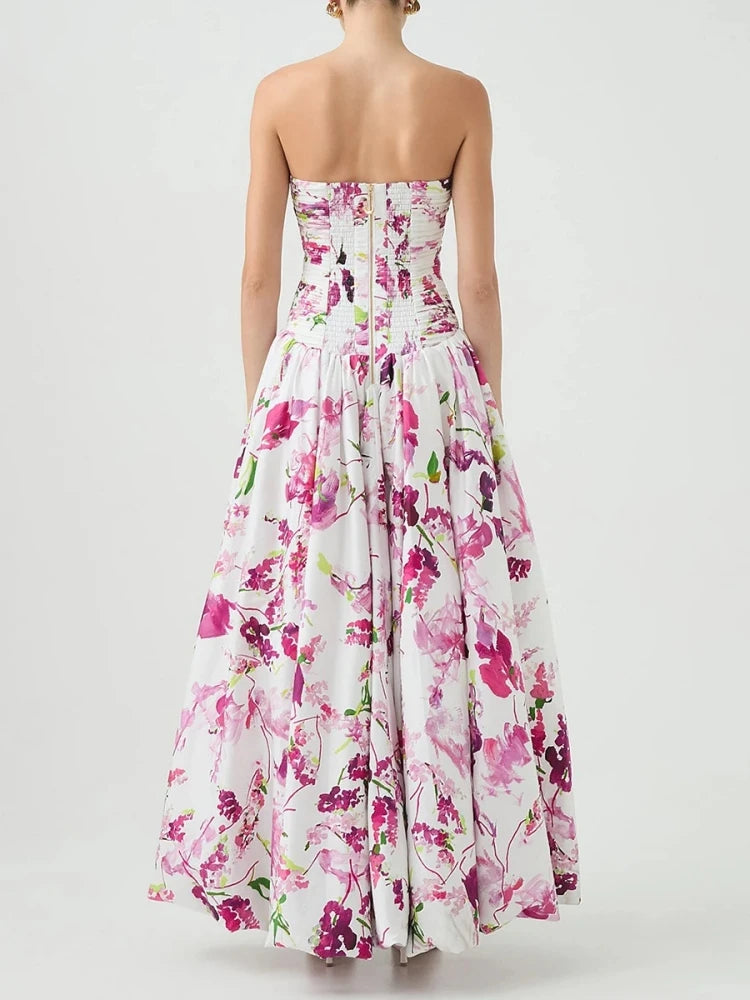 Trend4us Pastel Floral Embroidered Strapless Midi Dress