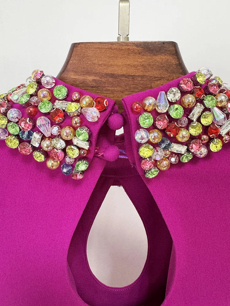 Trend4us Luxe Ruffled Crystal Backless Gown