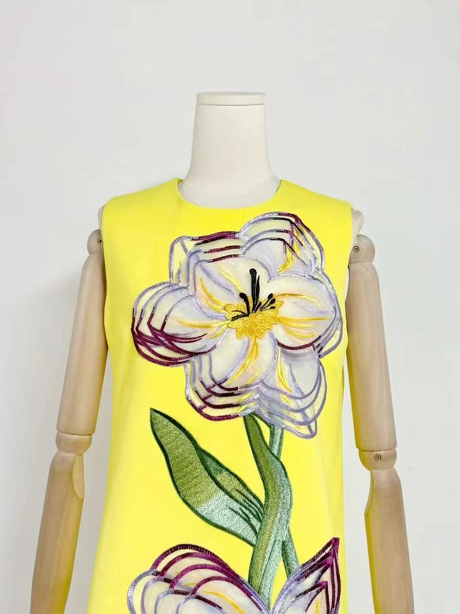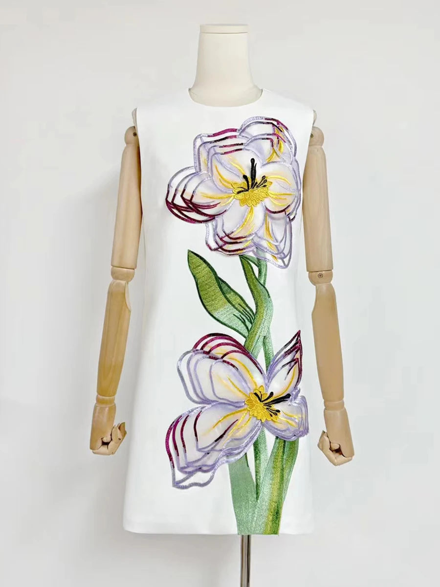 Trend4us Luxe Embroidered 3D Floral Mesh Mini Dress