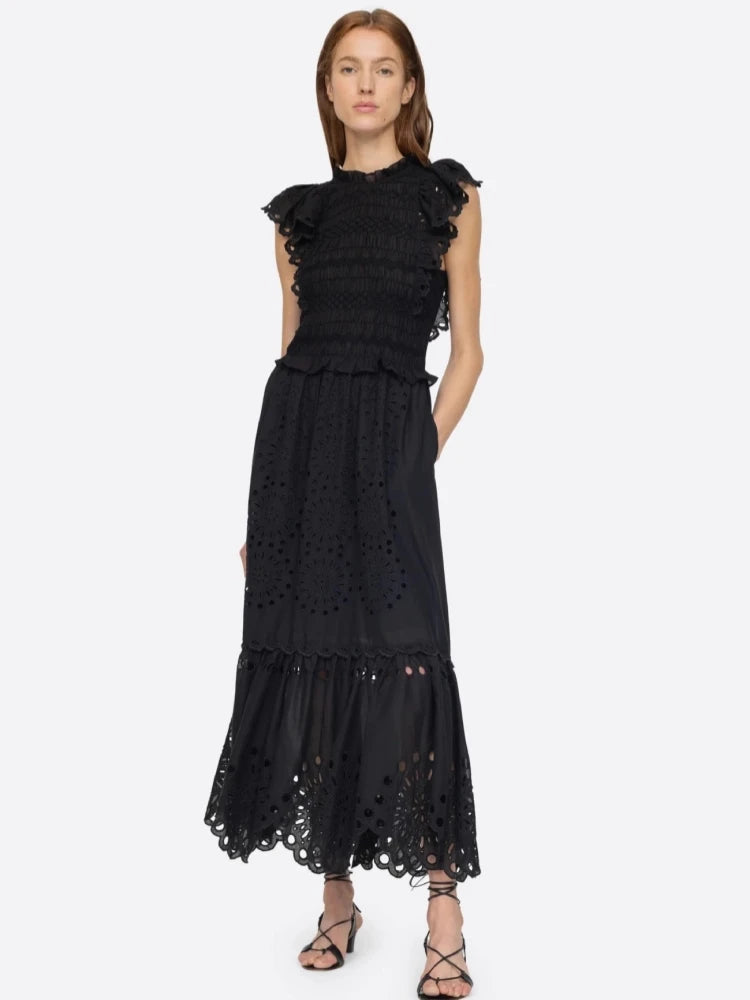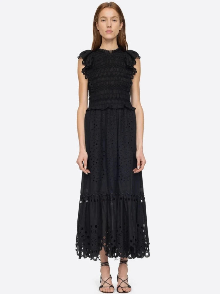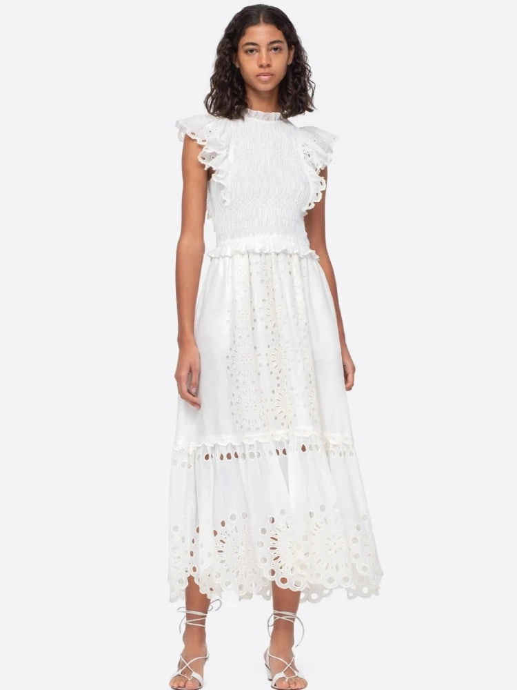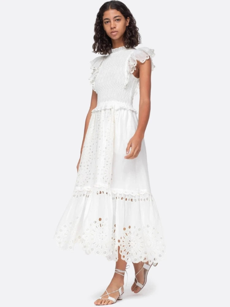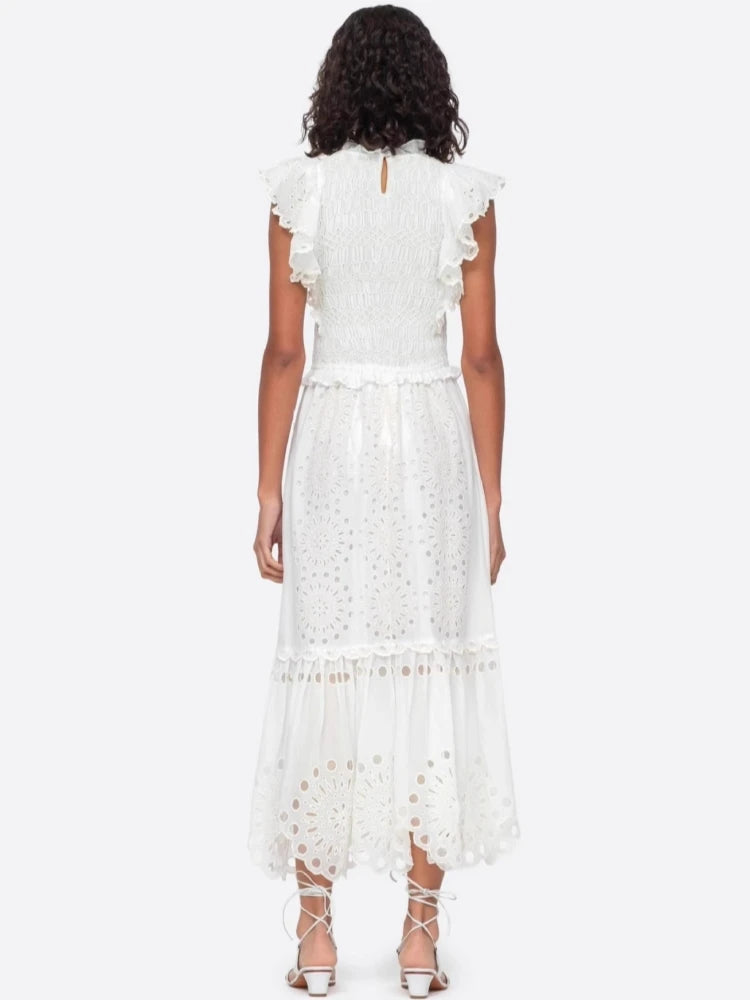 Trend4us Eyelet Embroidered Ruffle Dress