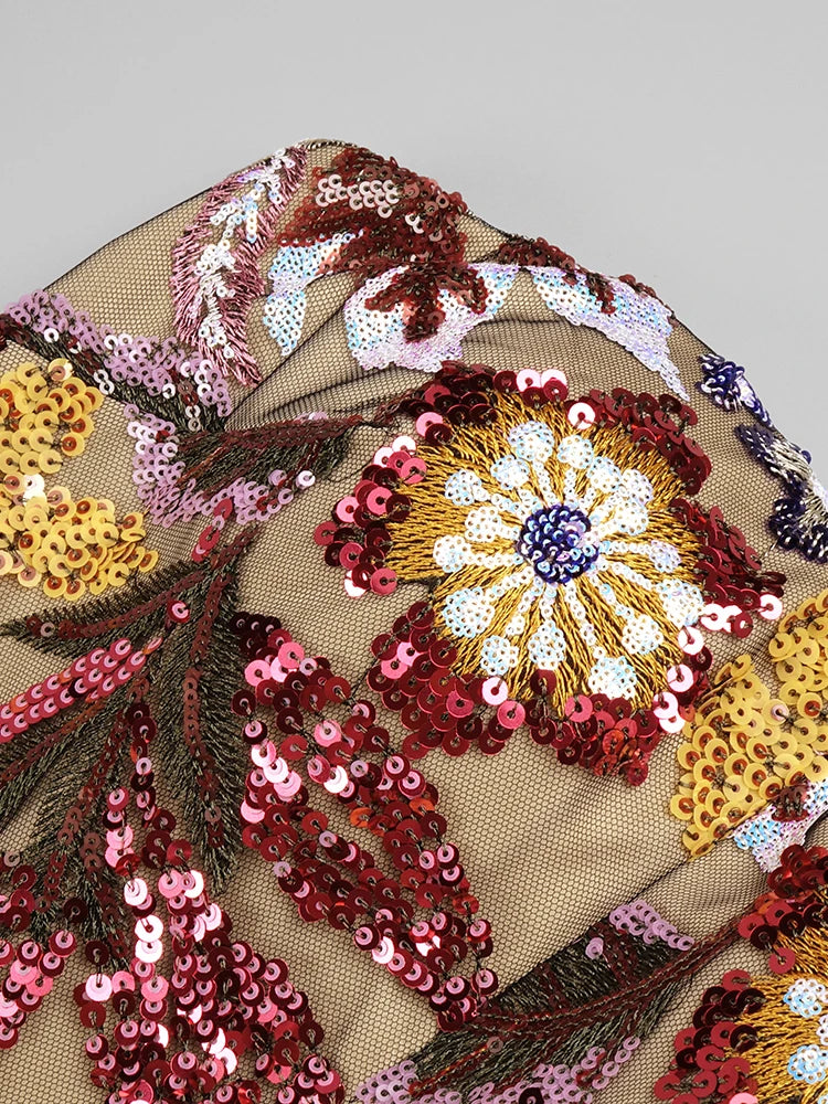 Trend4us Luxe Strapless Sequin Embroidery Dress