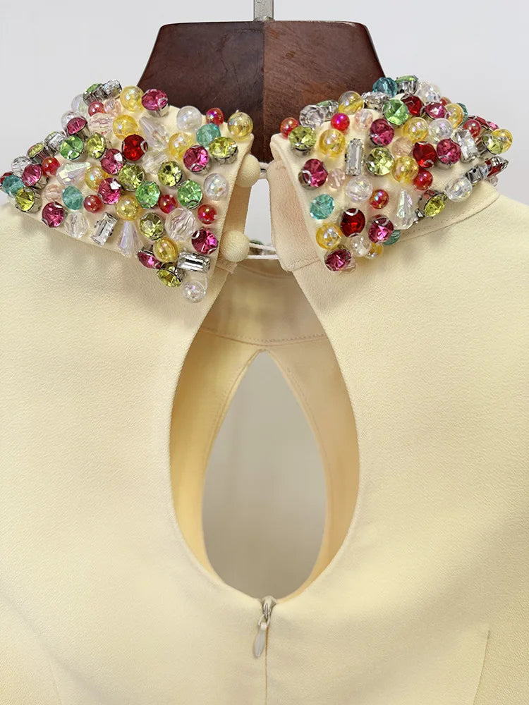 Trend4us Luxe Crystal Collar Cape Sleeve Mermaid Gown