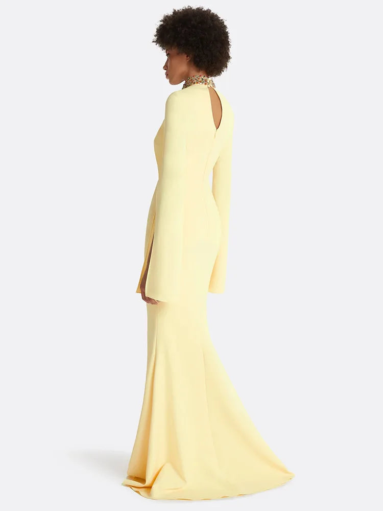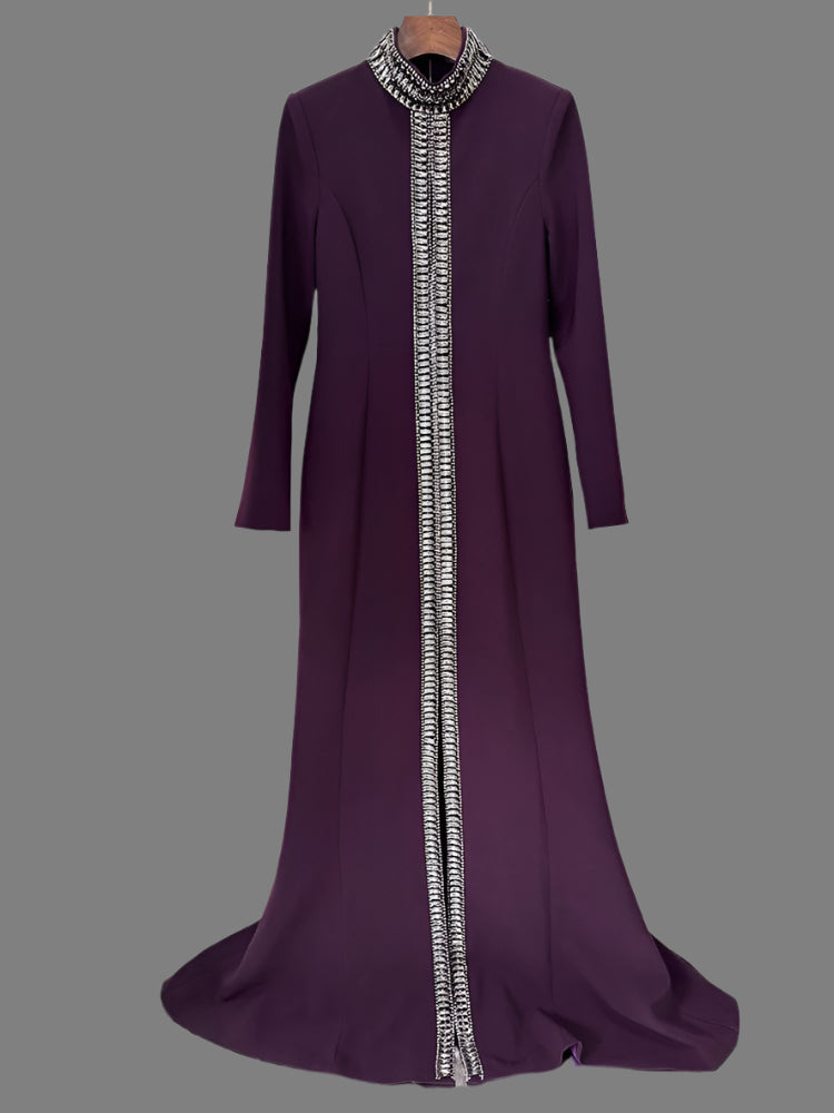 Trend4us Luxe High-Collar Embellished Front Slit Gown