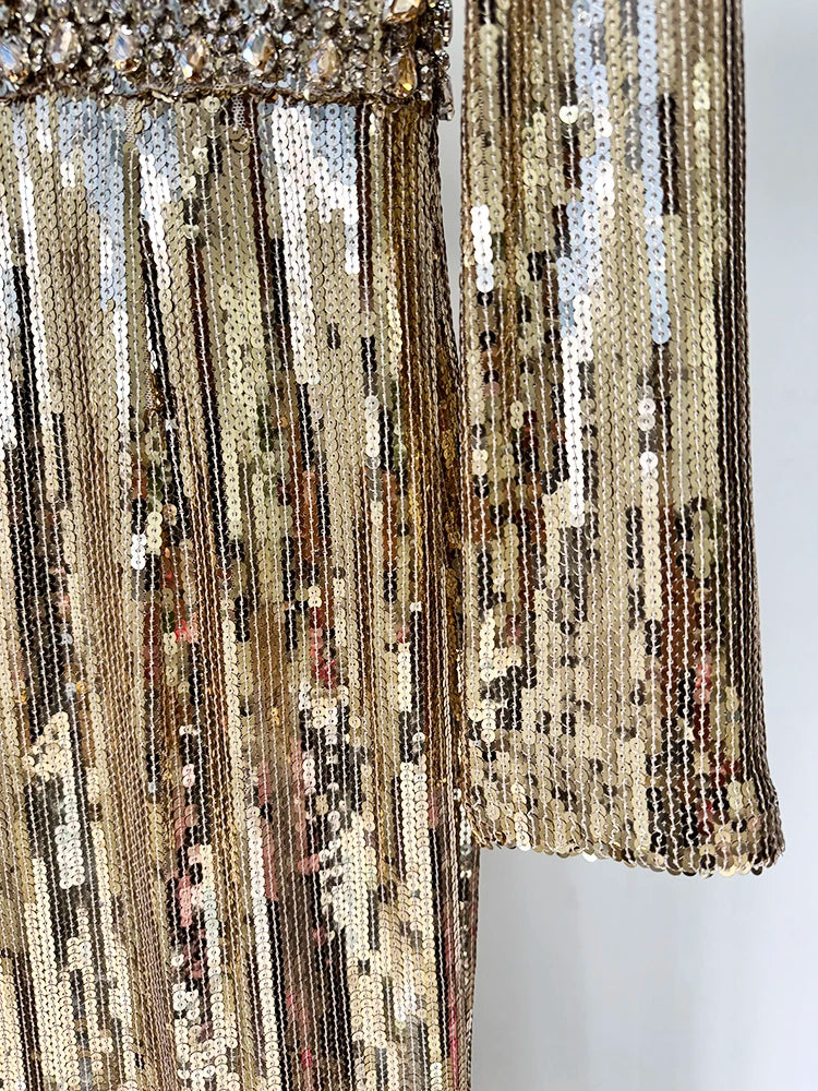 Trend4us Luxe Gold Sequin Crystal Embellished Evening Gown