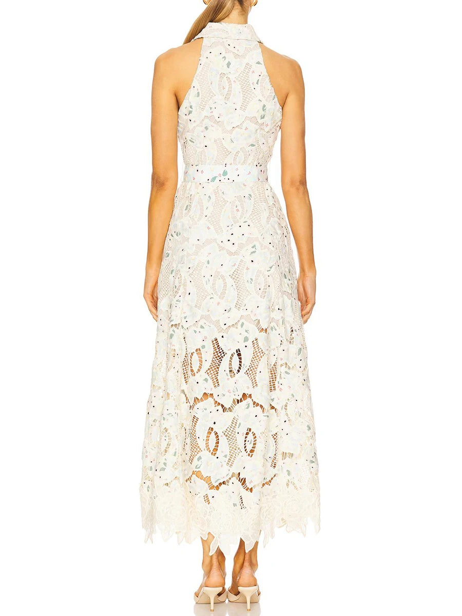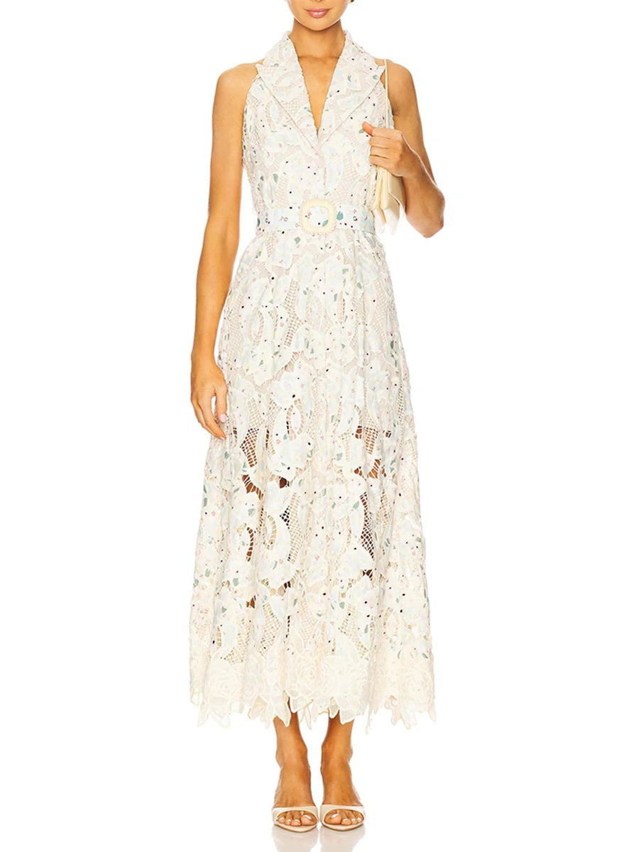 Trend4us Luxe Modern Lace Belted Maxi Dress