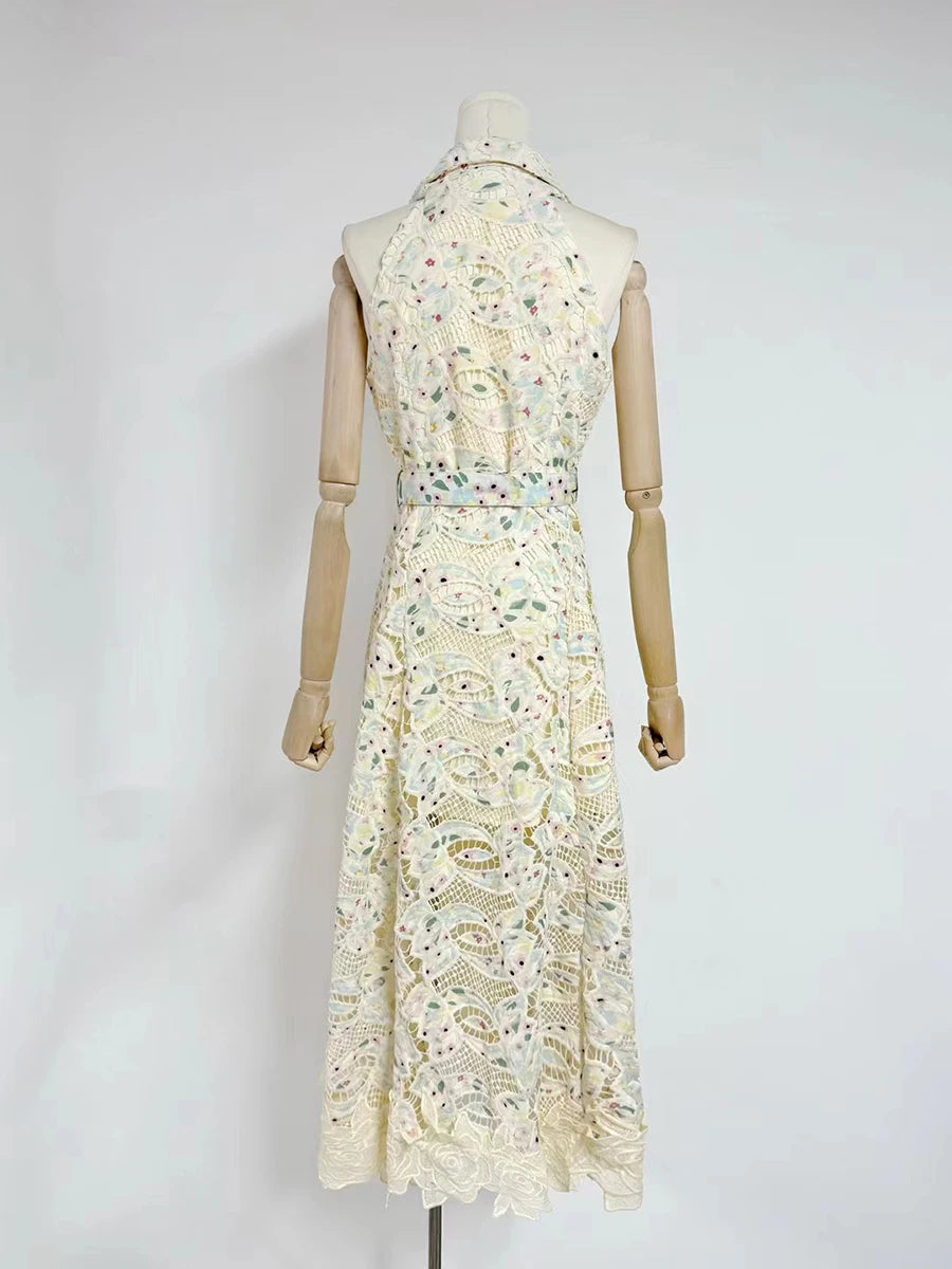 Trend4us Embroidered Ruffle Lace Belted Maxi Dress