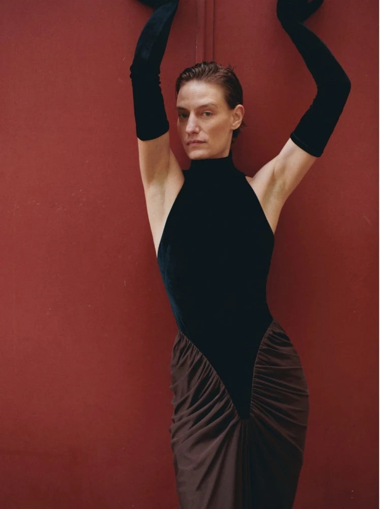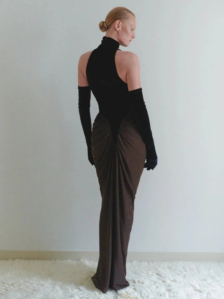 Trend4us Luxe Velvet Pleated Ruched Maxi Gown