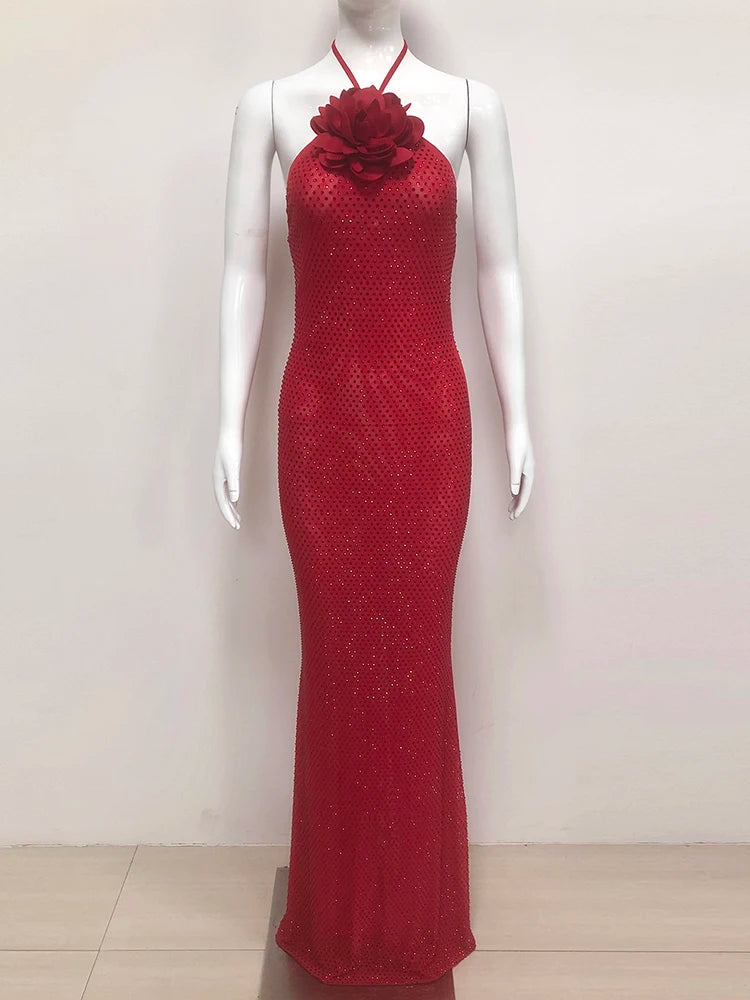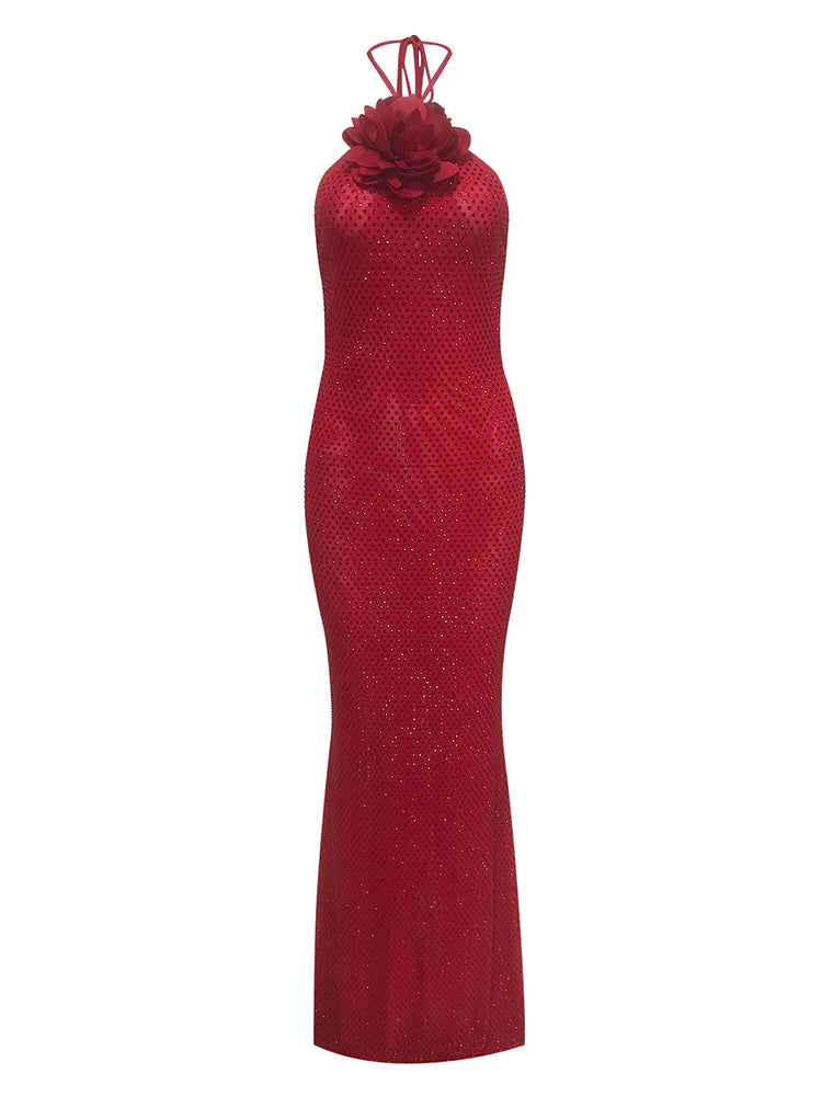 Trend4us Glam Rosette Sparkle Halter Gown
