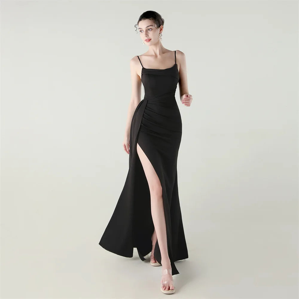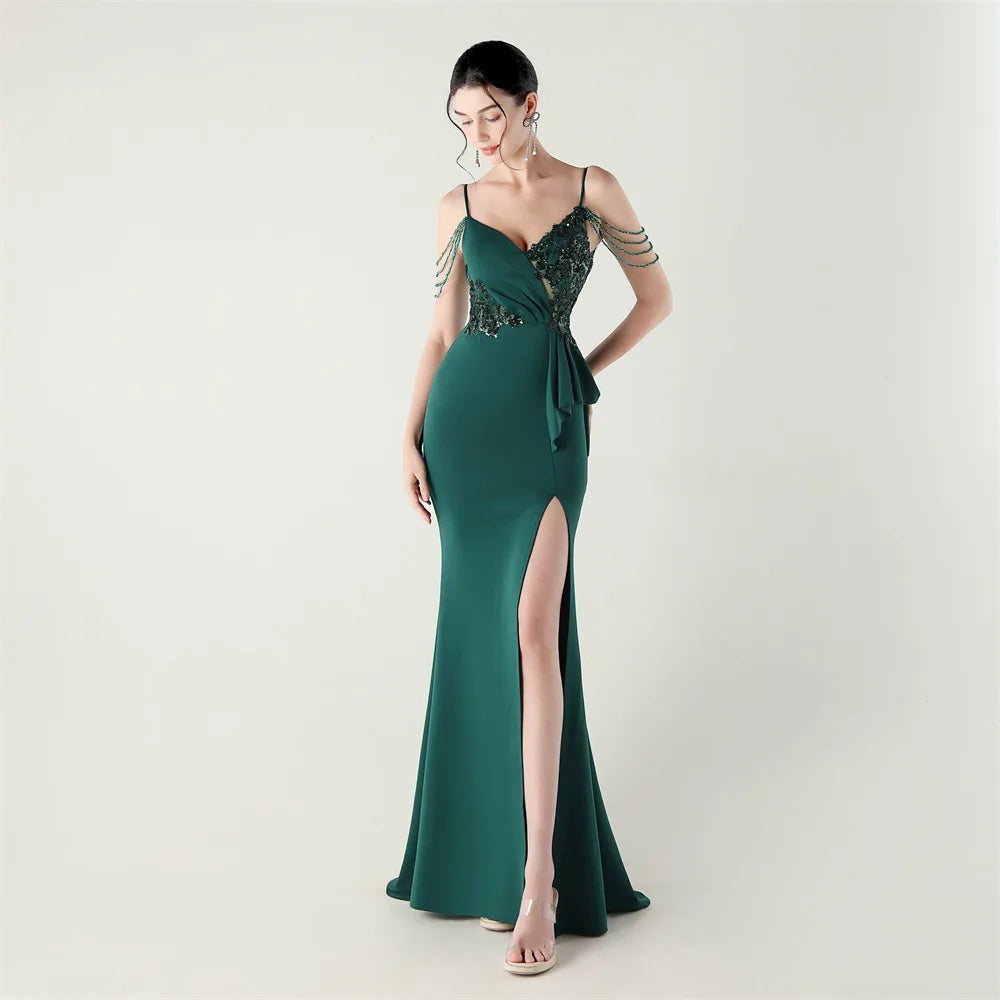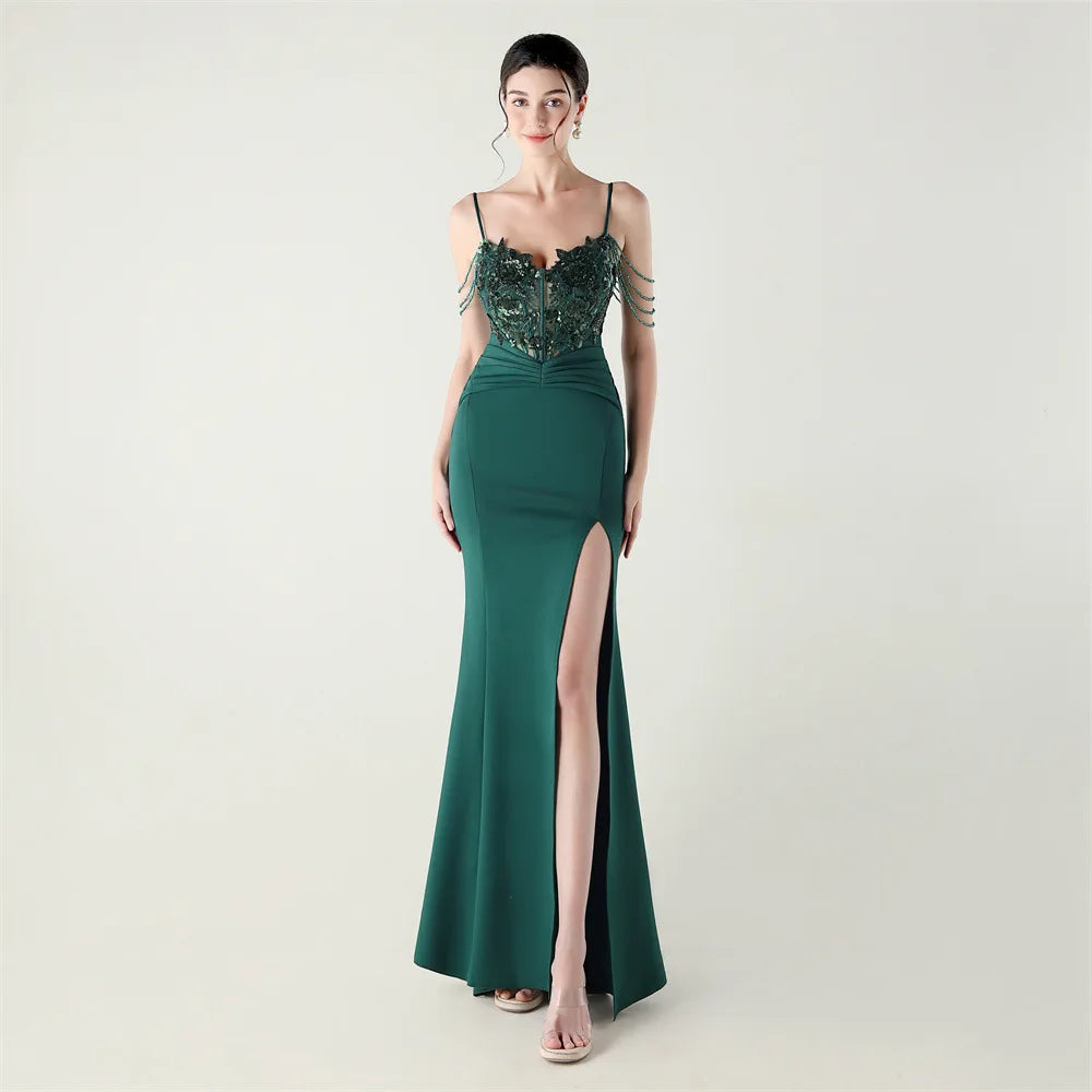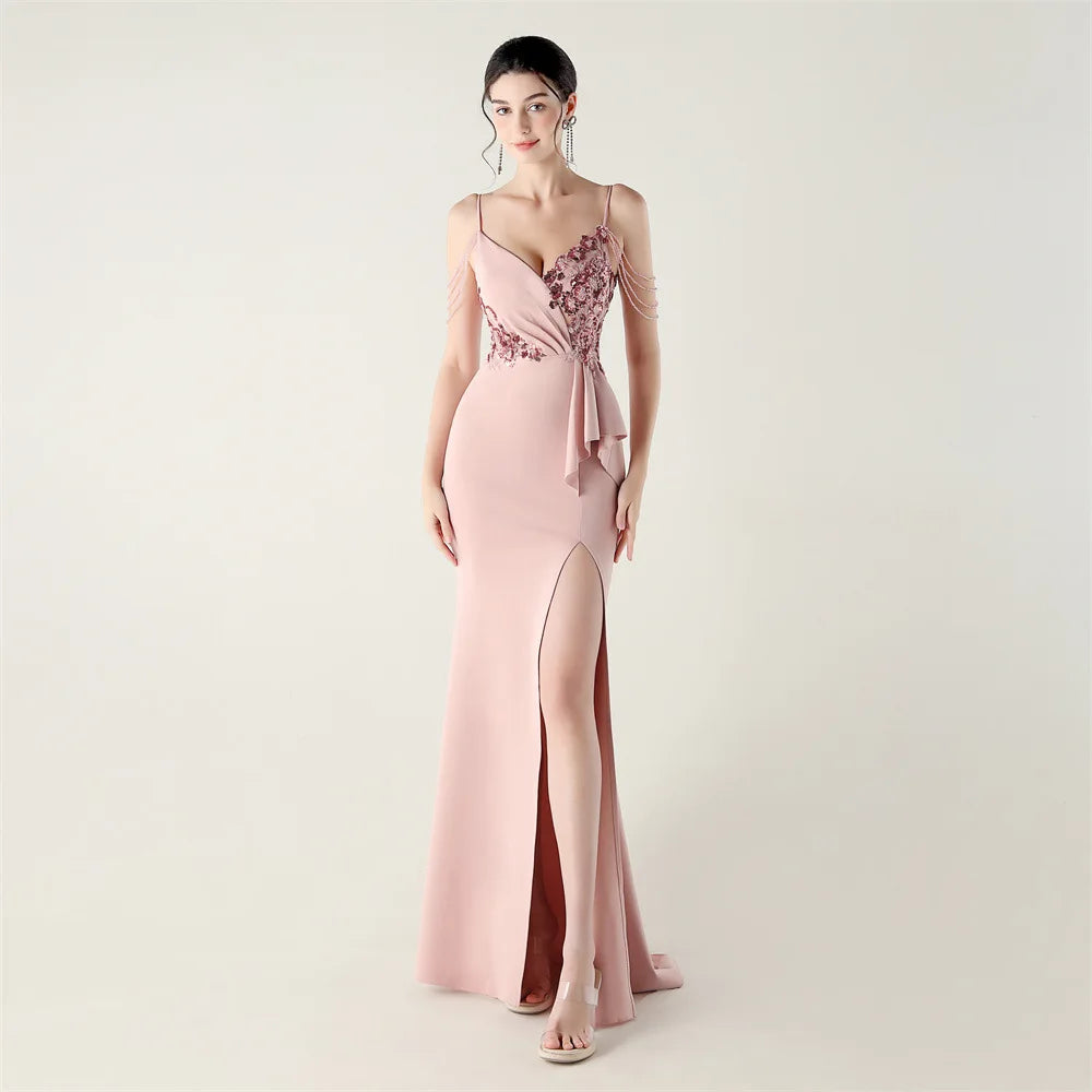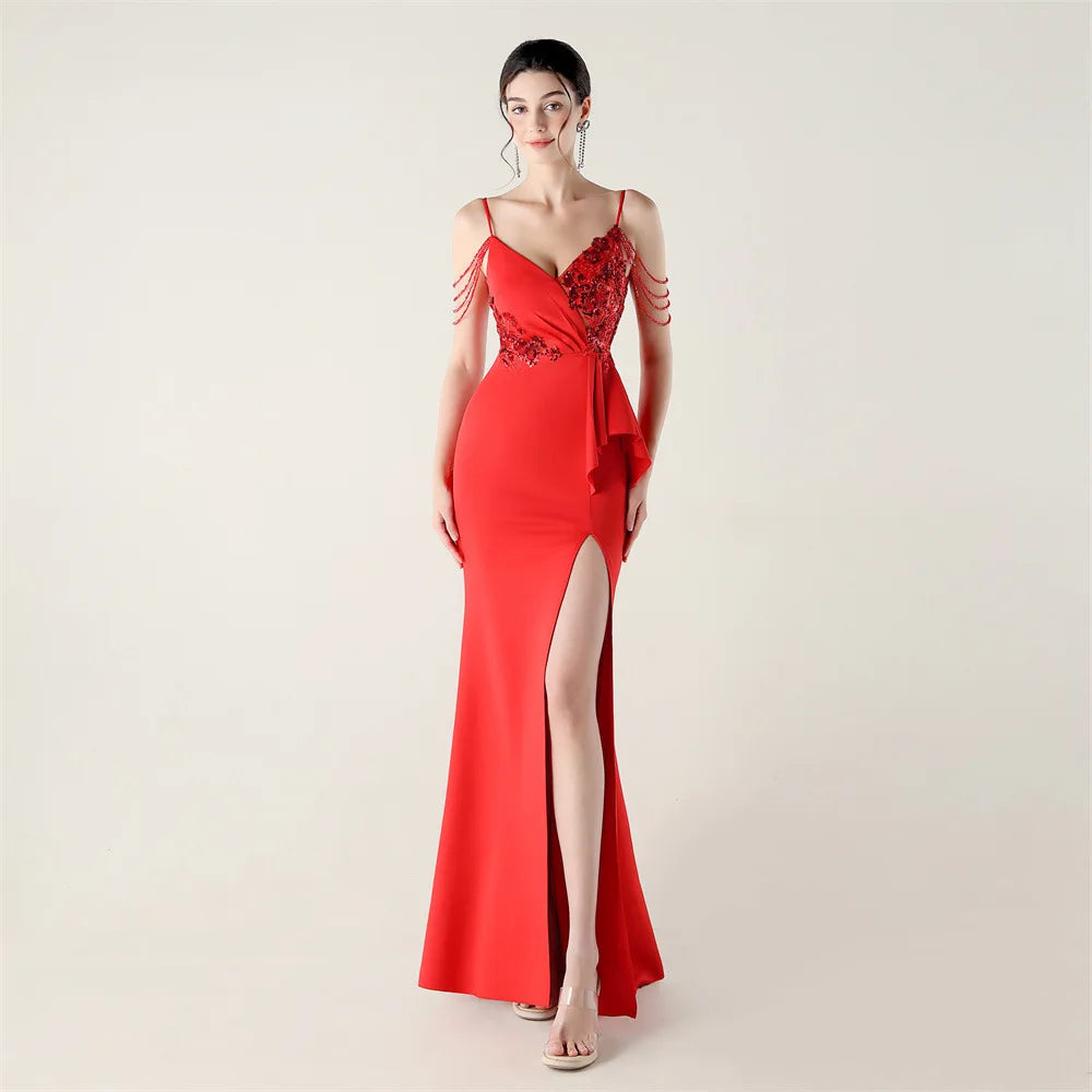 Trend4us Elegant Sequin Appliqué Slit Maxi Evening Dress