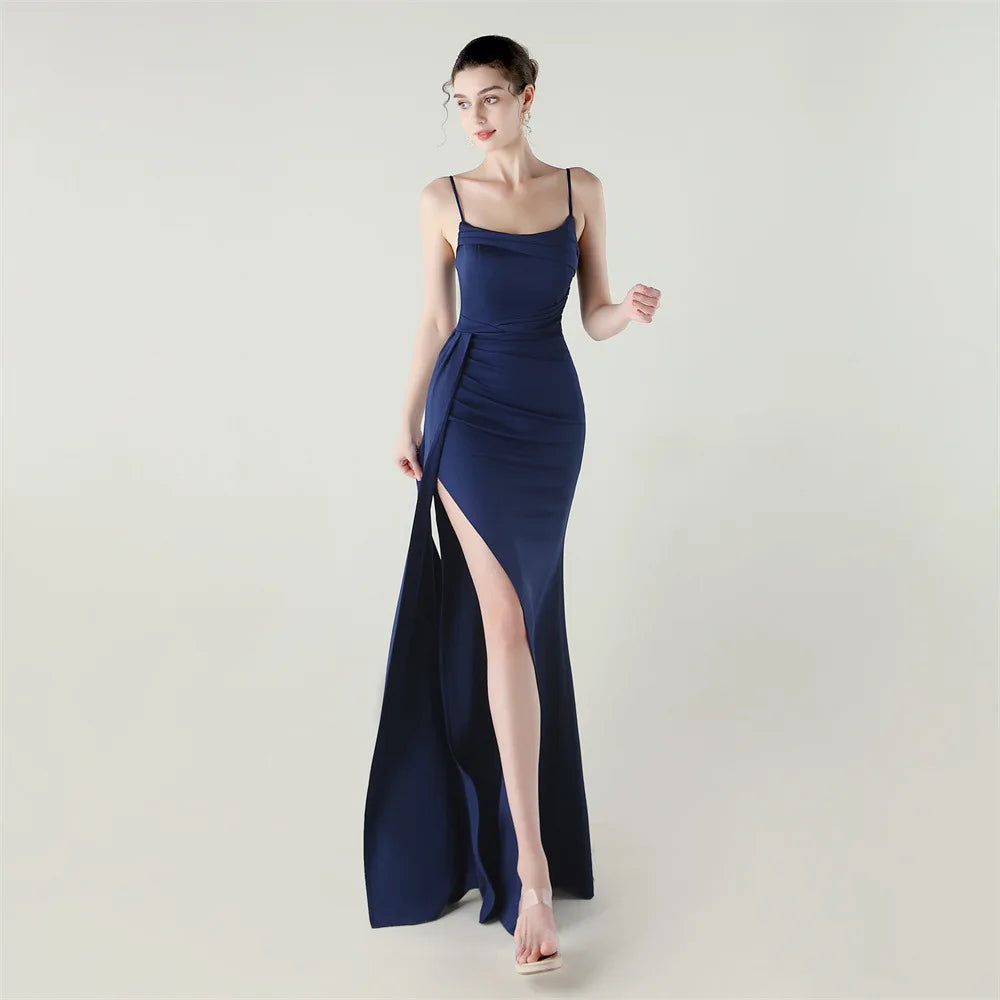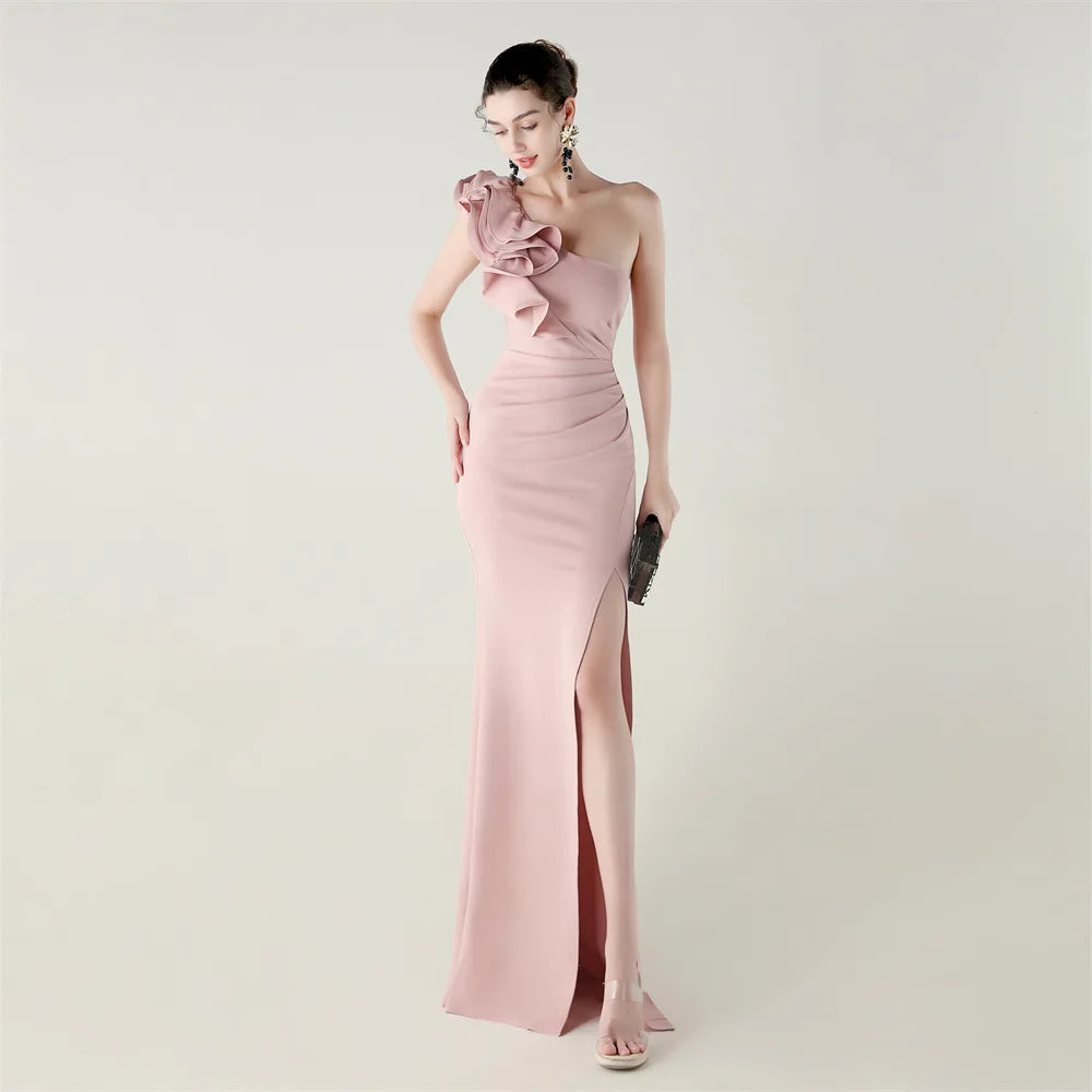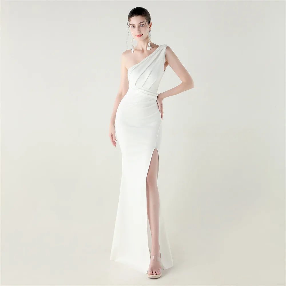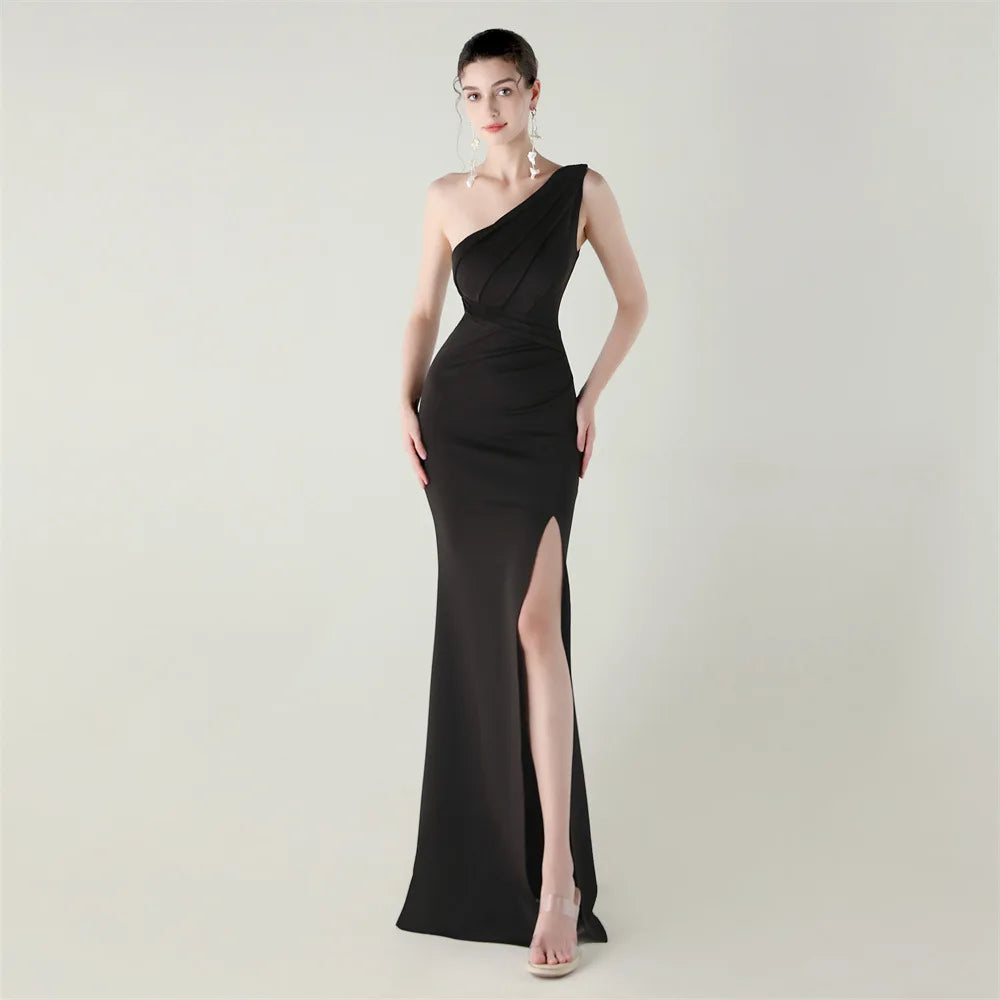 Trend4us Elegant One-Shoulder Draped Slit Maxi Evening Gown