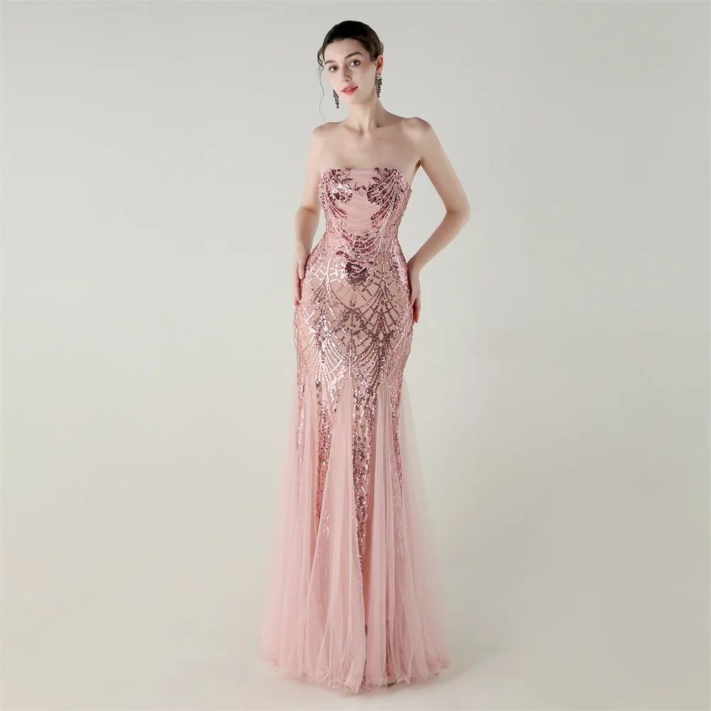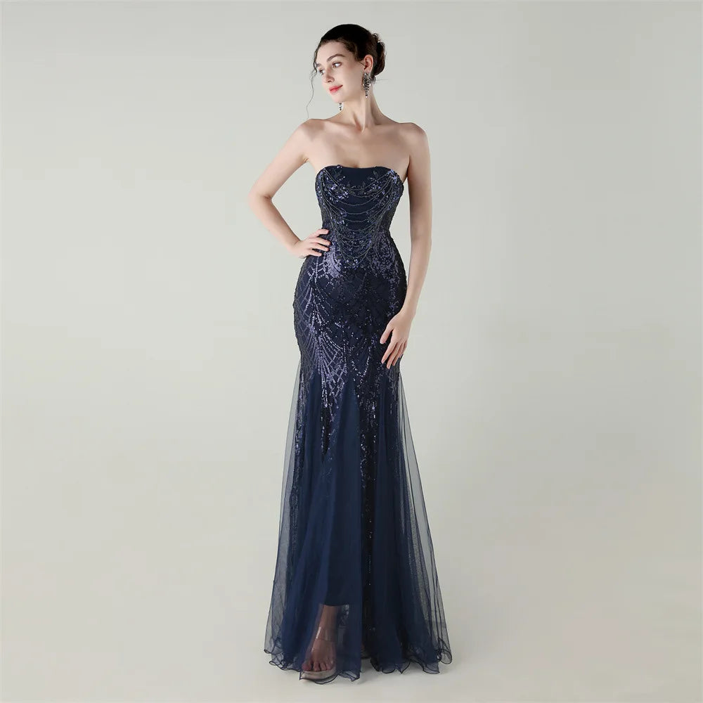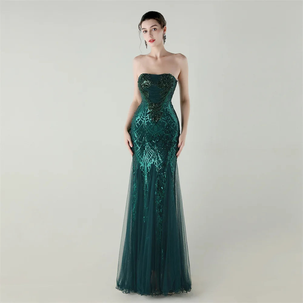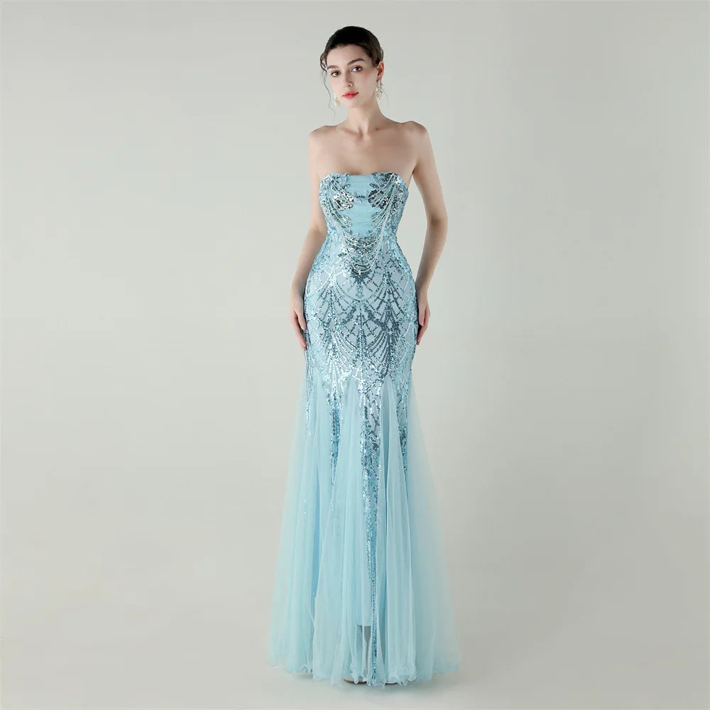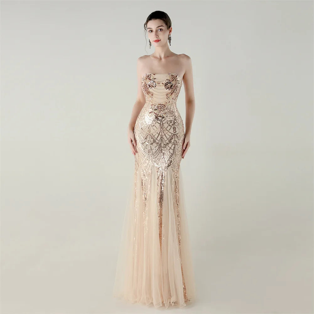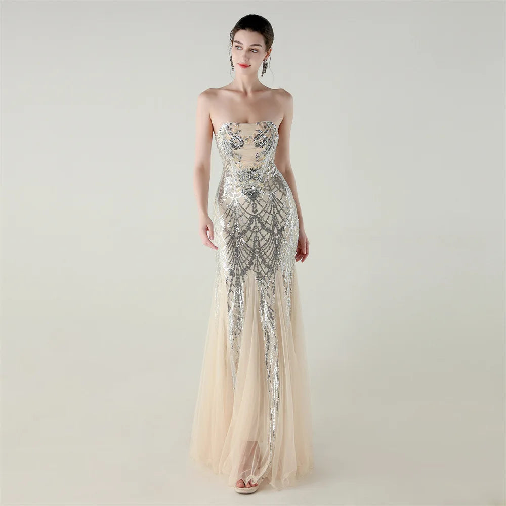 Trend4us Luxe Strapless Sequin Beaded Corset Maxi Evening Gown