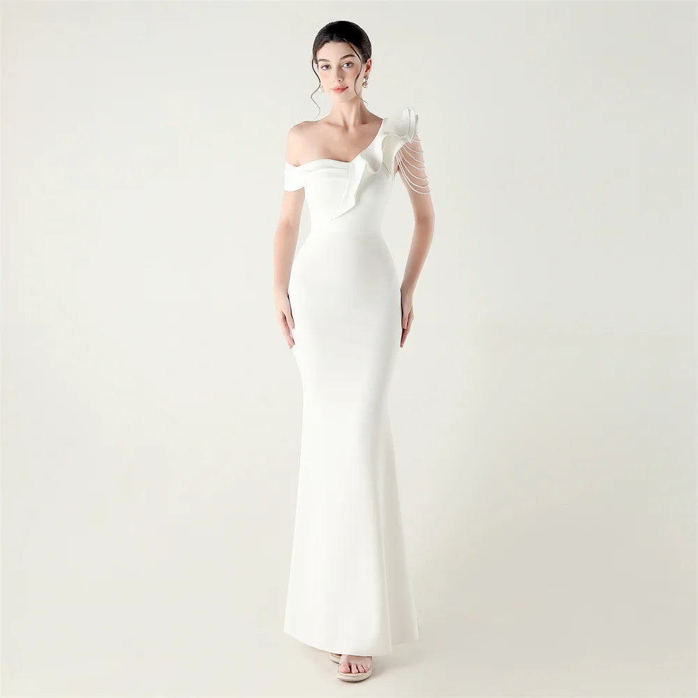 Trend4us Elegant One-Shoulder Bridal Evening Gown