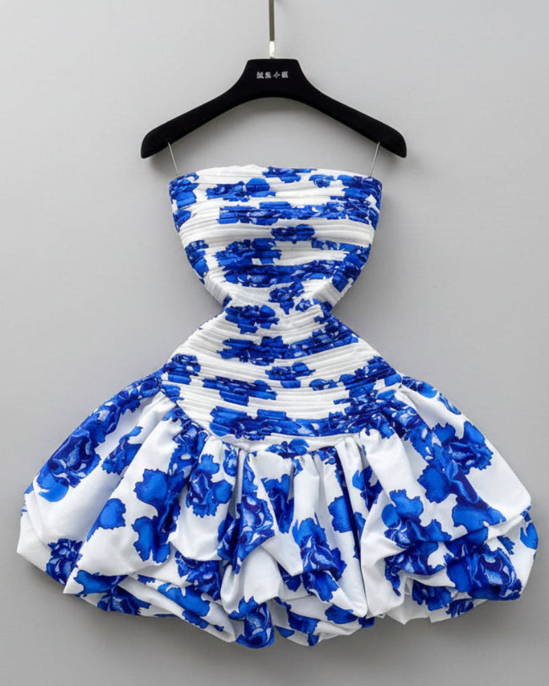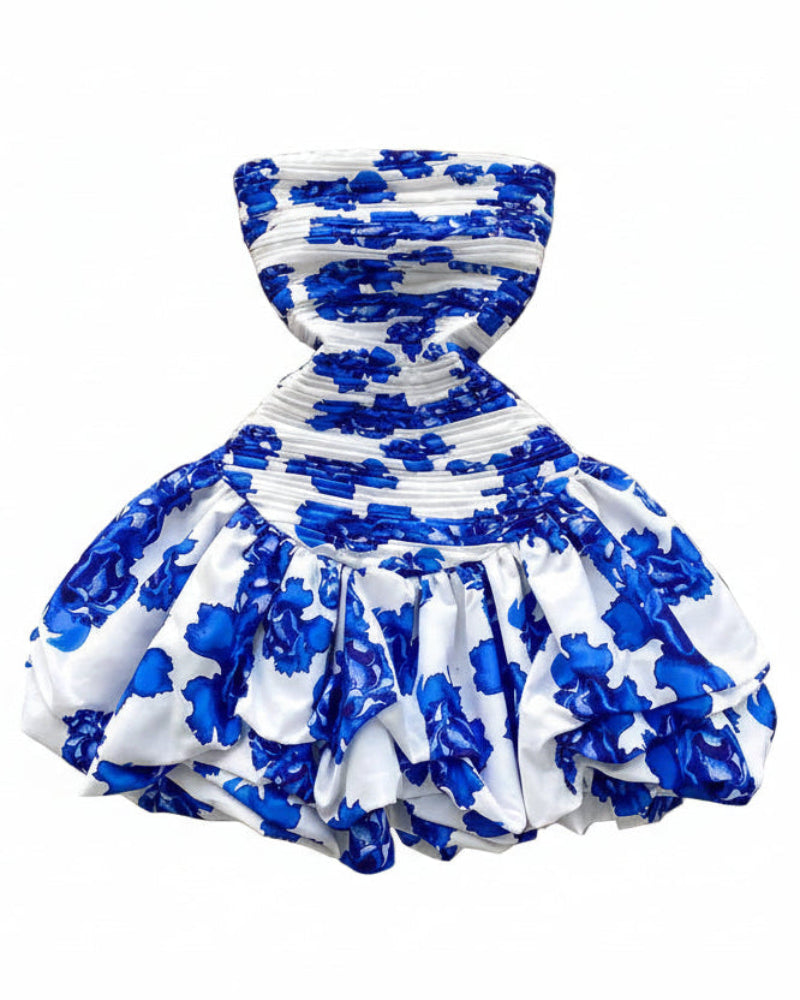Trend4us Sculpted Strapless Floral Ruched Mini Dress
