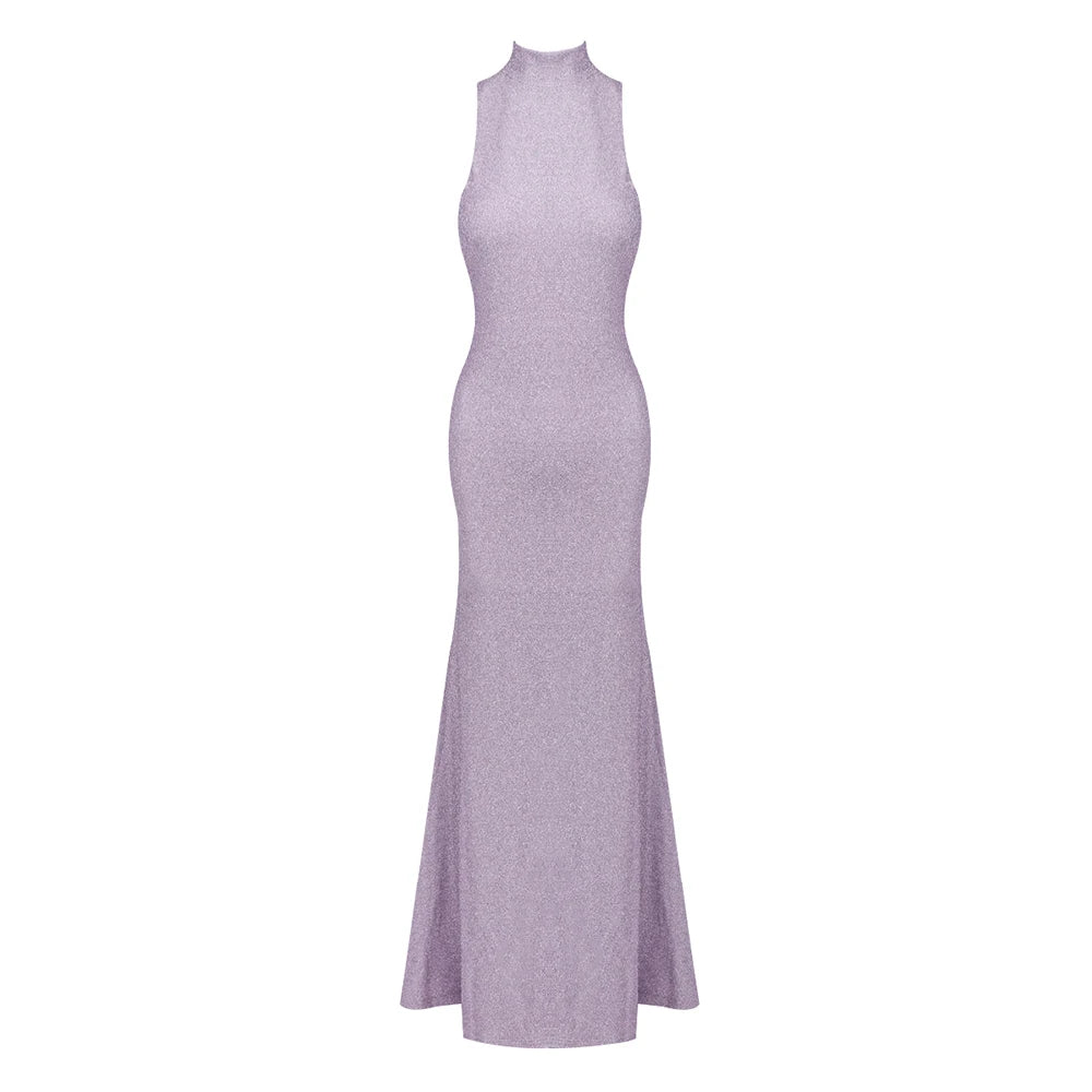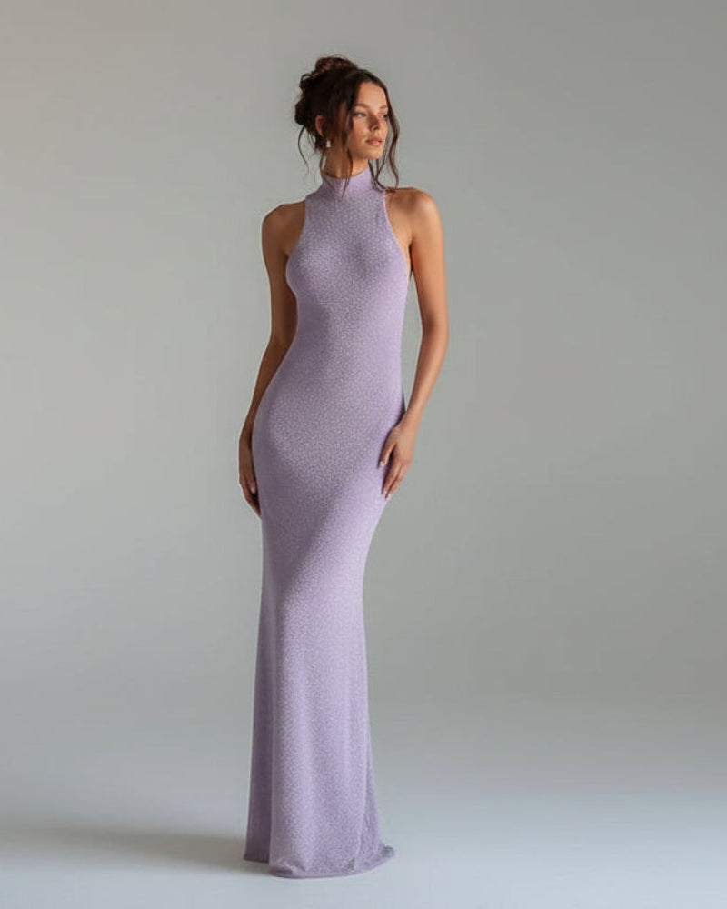 Trend4us Shimmer High-Neck Open-Back Maxi Dress