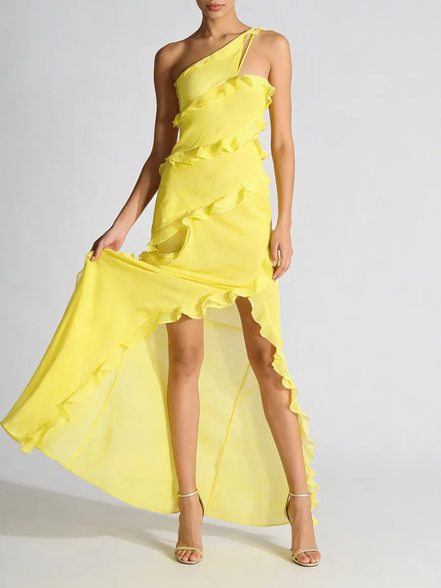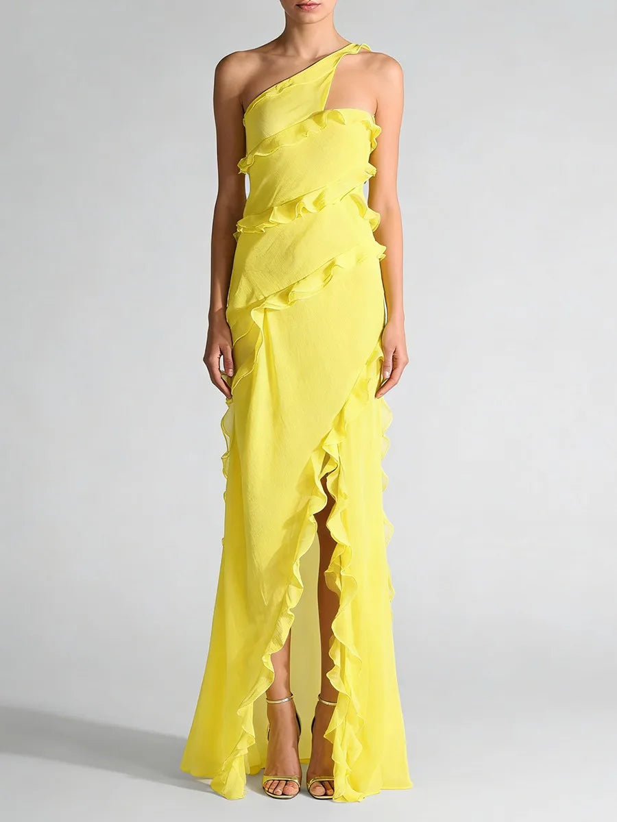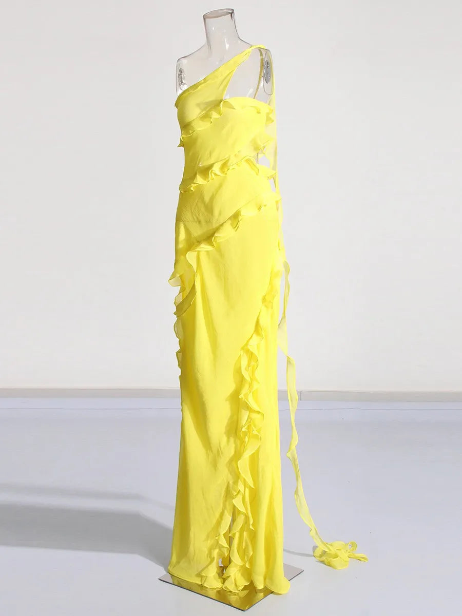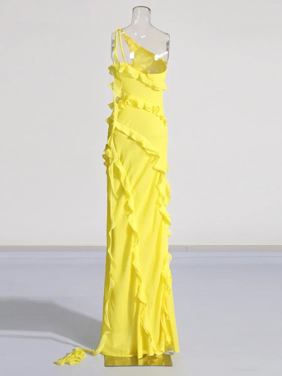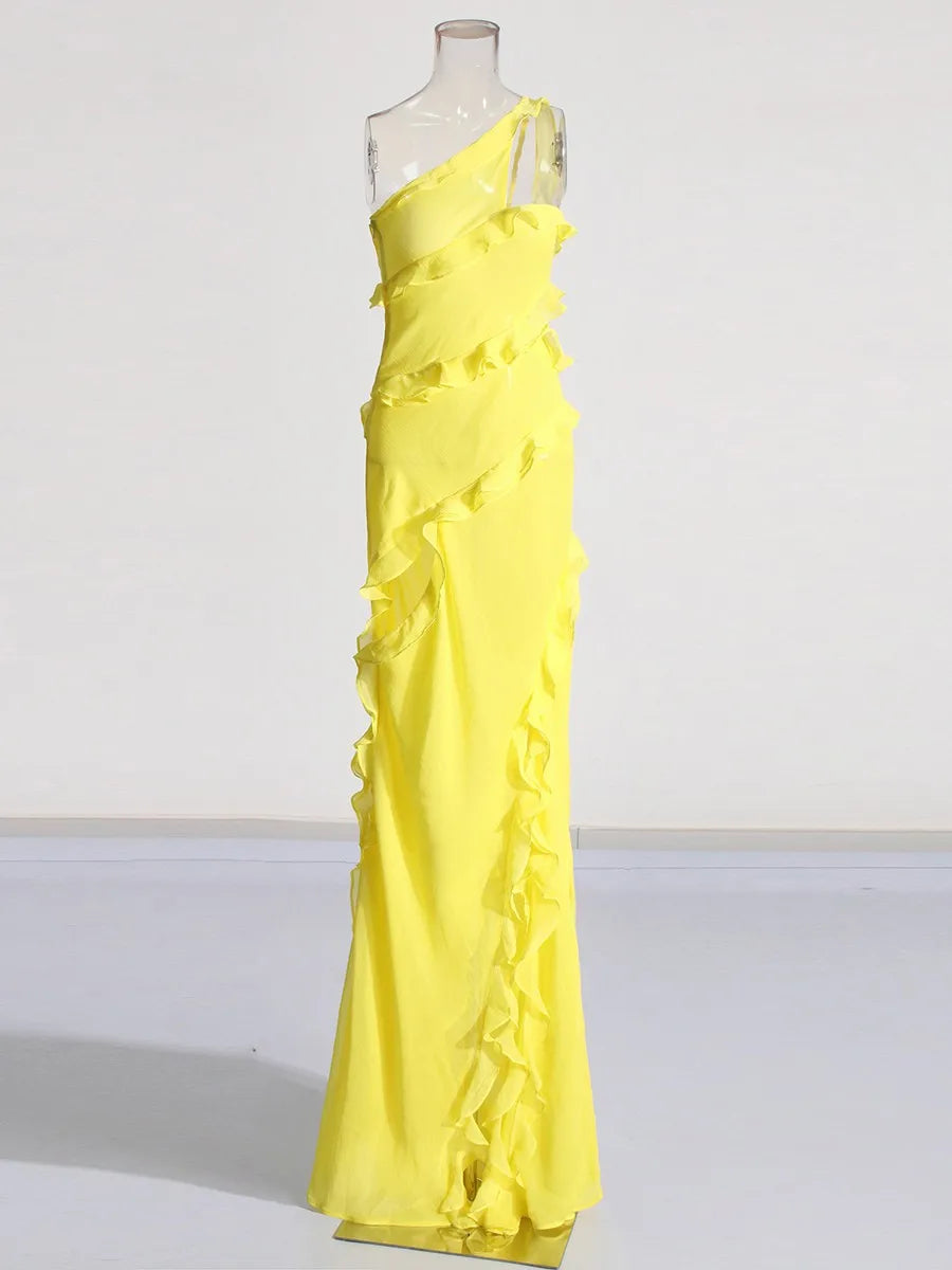 Trend4us Elegant One-Shoulder Ruffled Chiffon Maxi Dress
