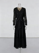The Trend4us Elegant Floral Lace Belted Maxi Dress embodies timeless grace and refined femininity. Designed with an exquisite floral lace bodice and flowing tiered chiffon skirt, this piece offers a harmonious blend of texture and movement.