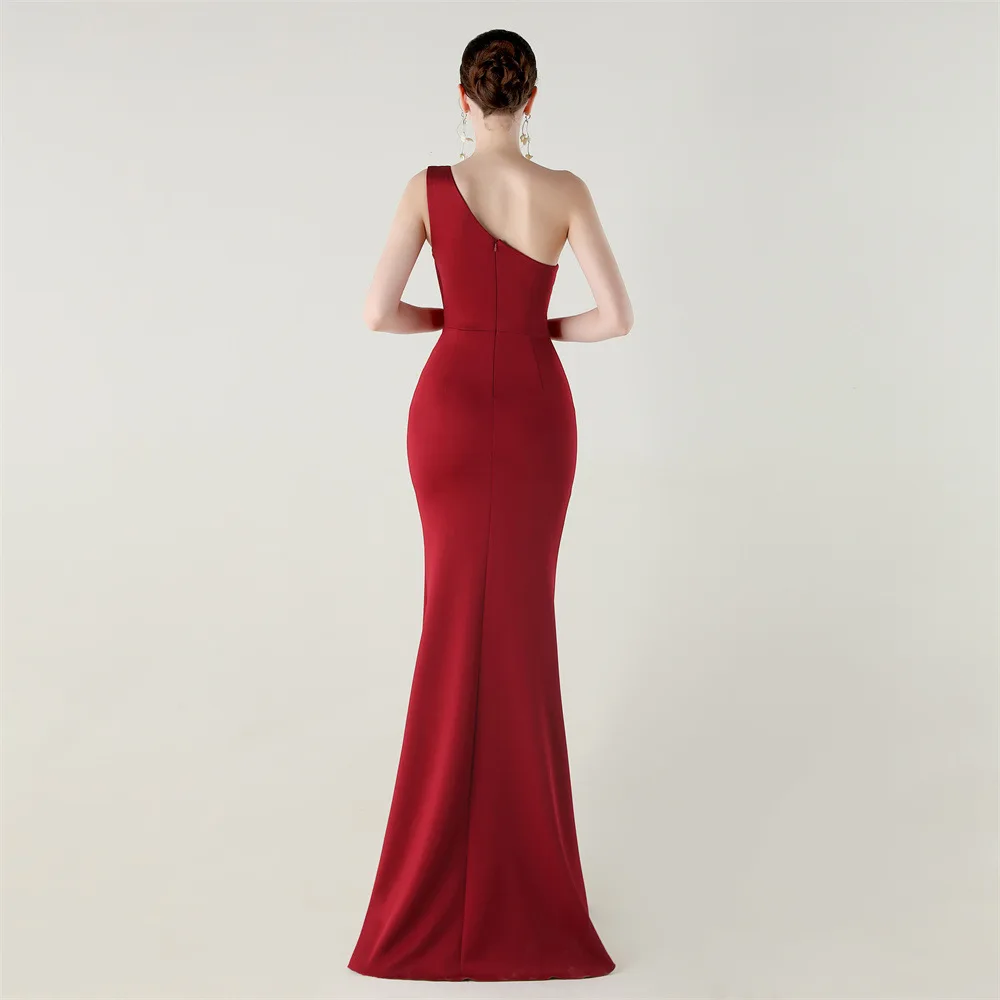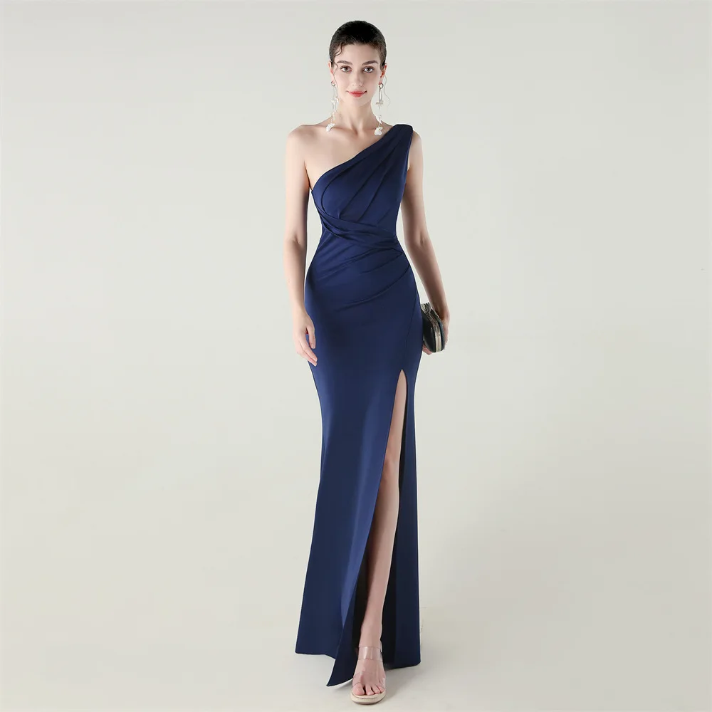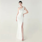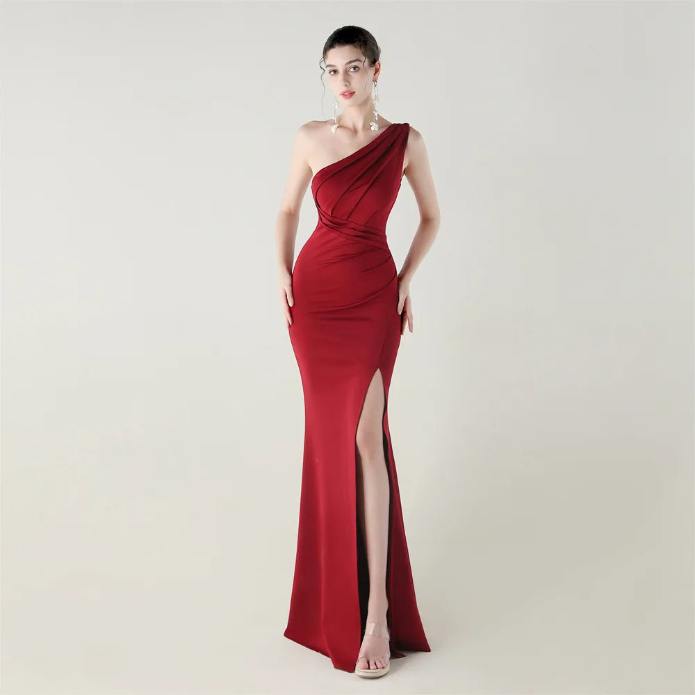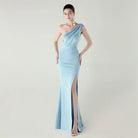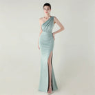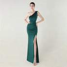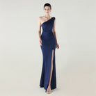 Trend4us Elegant One-Shoulder Draped Slit Maxi Evening Gown