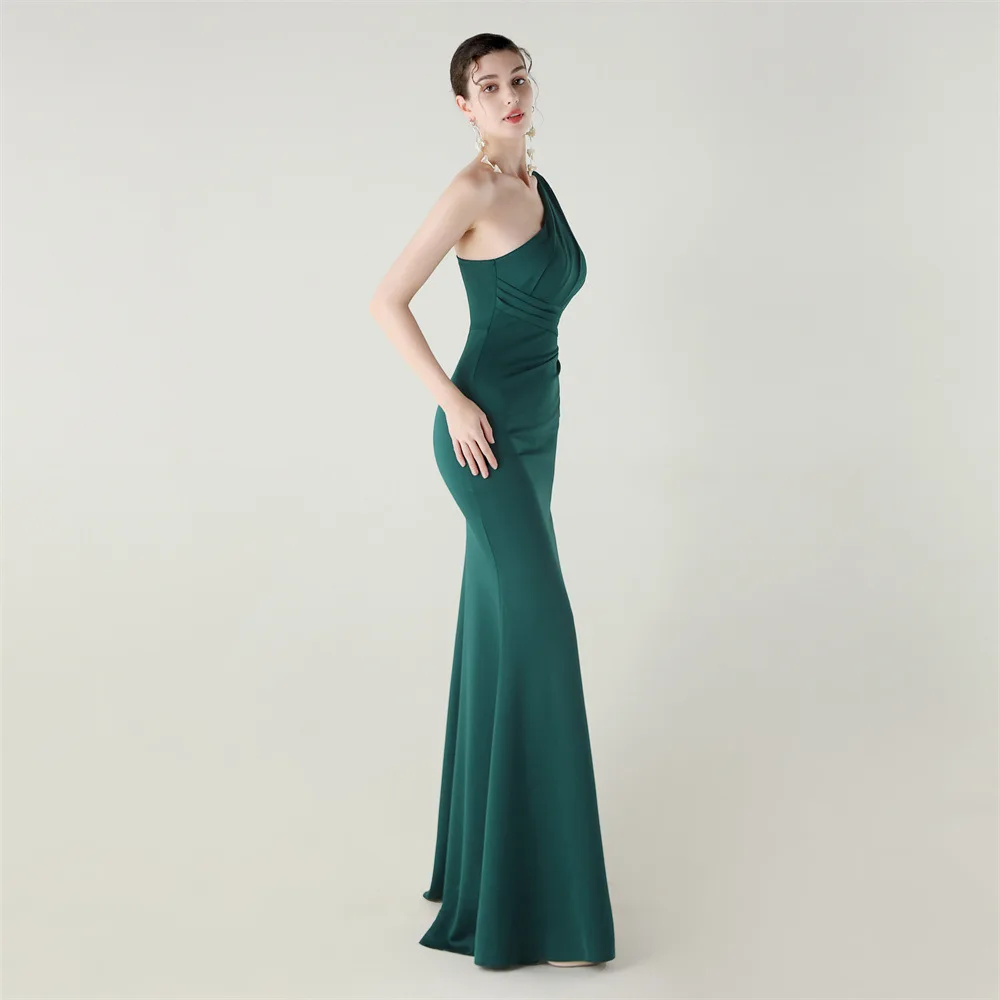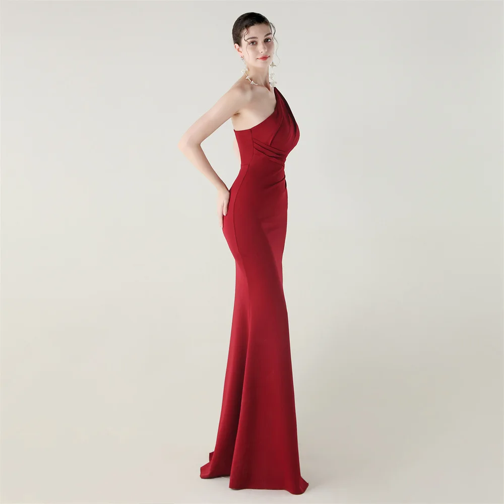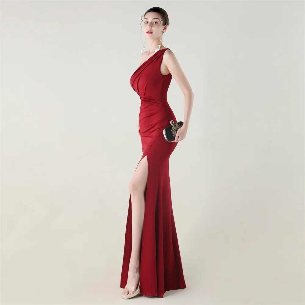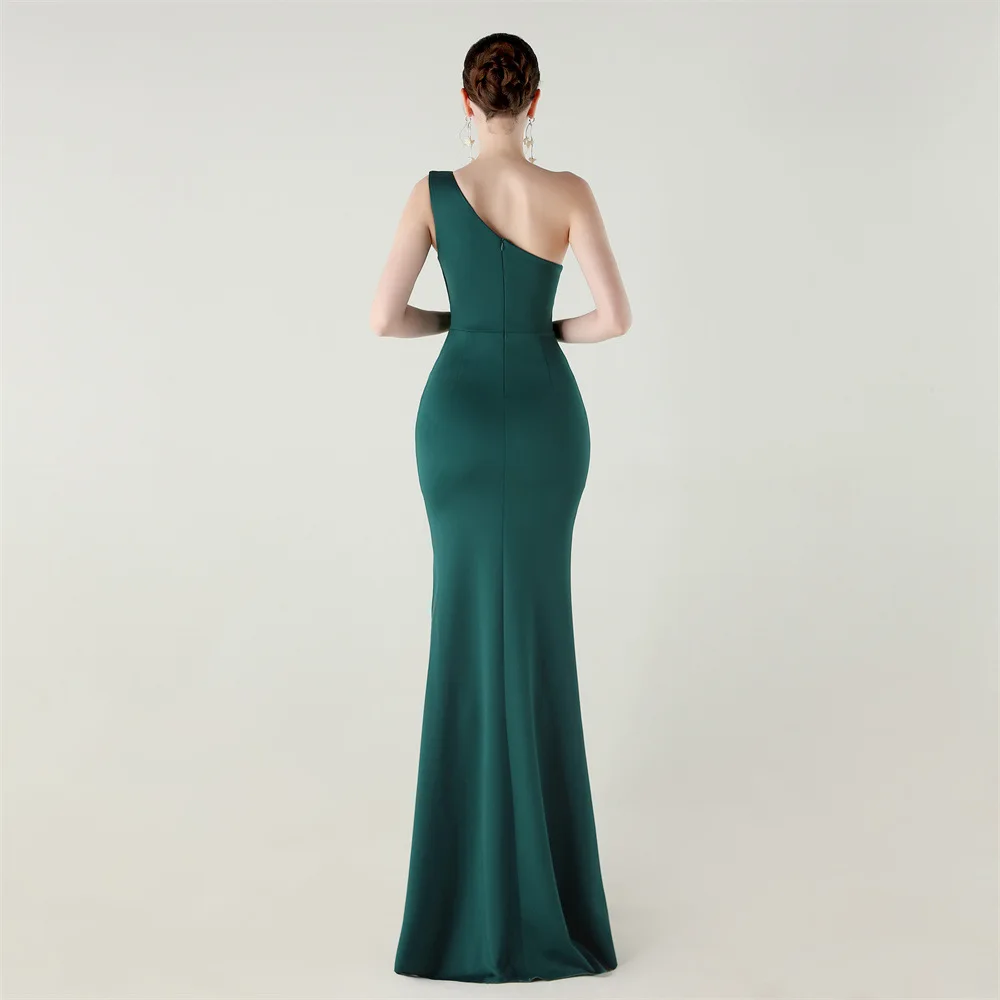Trend4us Elegant One-Shoulder Draped Slit Maxi Evening Gown
