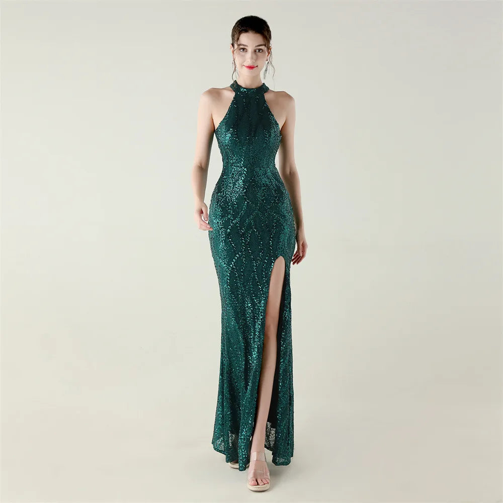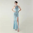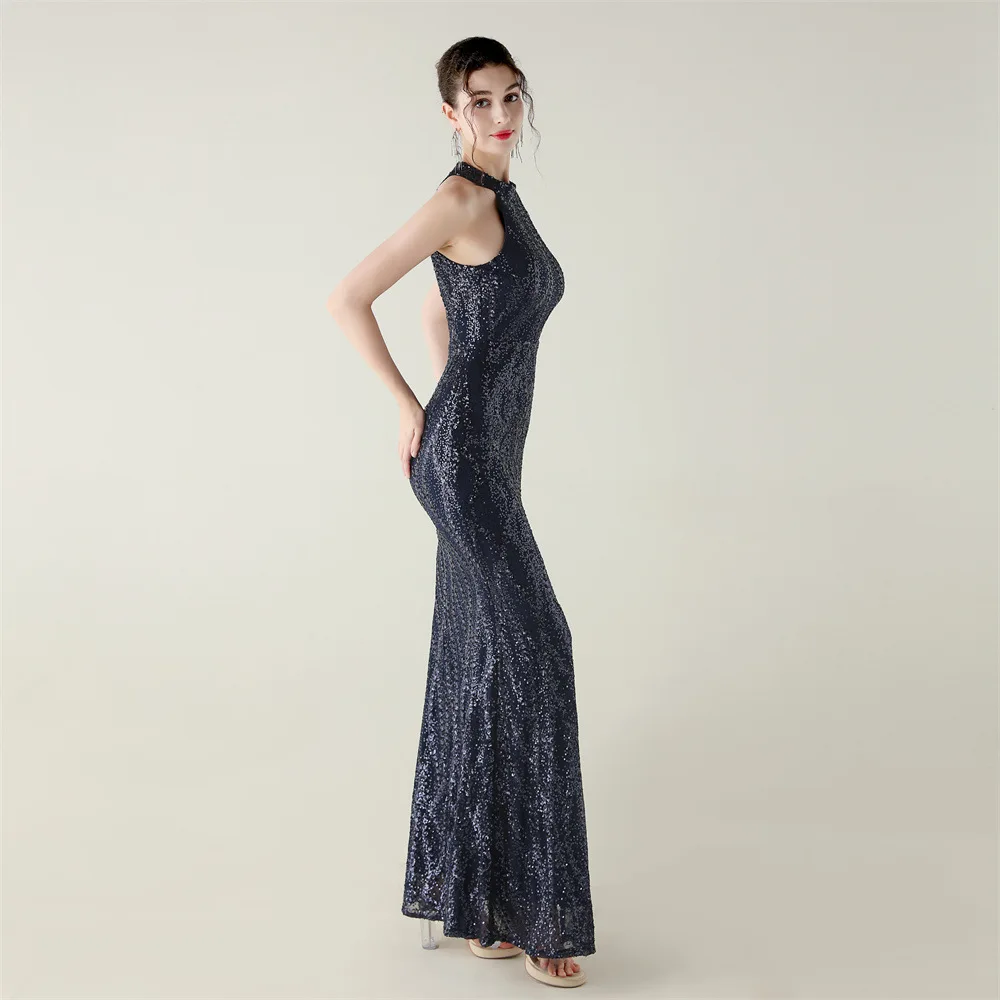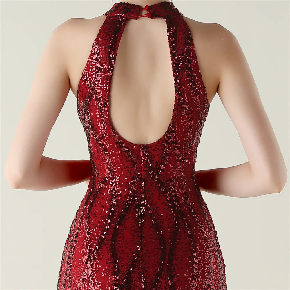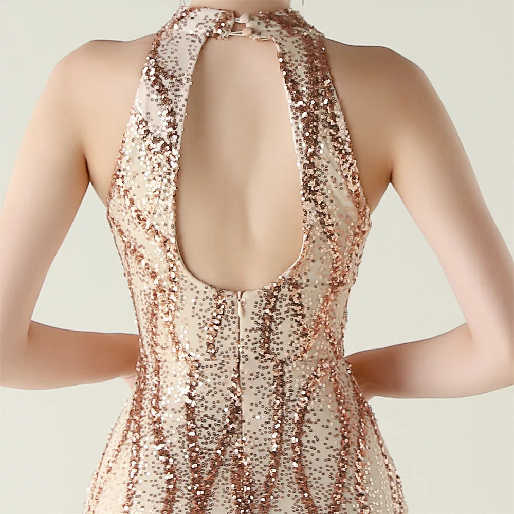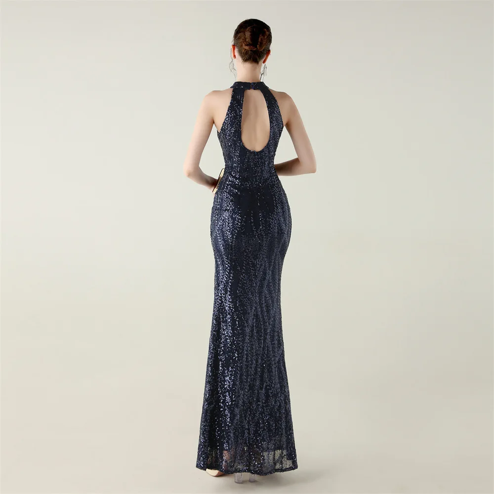 Trend4us Halter Sequin Open-Back Maxi Evening Gown